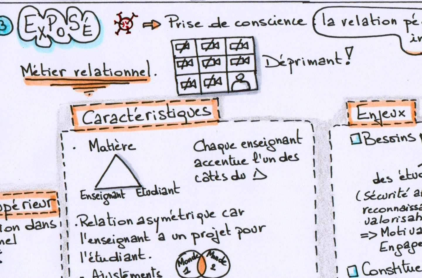 Les différents contextes (cours théorique, atelier, tutorat, labo, exercice, …) et configurations (grand groupe, petit groupe, individuelle) font naître une multitude de relations pédagogiques.
