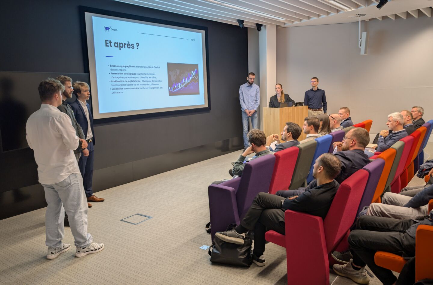 Ce vendredi 10 janvier, la séance entrepreneuriale marquait la clôture d’un parcours d’apprentissage unique au sein du cours d'entrepreneuriat destiné aux étudiant·e·s des cursus cybersécurité et développement d'applications de l'année diplômante. L'objectif principal de ce cours est de stimuler l'esprit entrepreneurial des étudiant·e·s tout en développant des compétences transversales essentielles comme la communication, la gestion de groupe et l'analyse des besoins, sans oublier la mise en pratique des compétences techniques acquises pendant la formation.