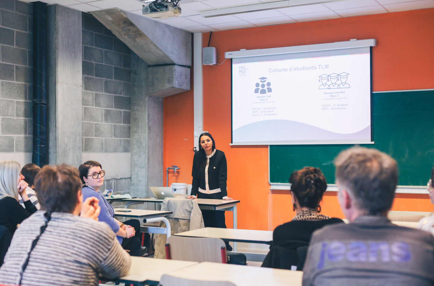 Sonia El Guendi, la coordinatrice de VR Diagnostix, a présenté les objectifs, la méthodologie et les résultats espérés lors d'un Réveil de la Recherche organisé au local 106 du Campus de l'Ourthe ce mardi 1er avril 2025.