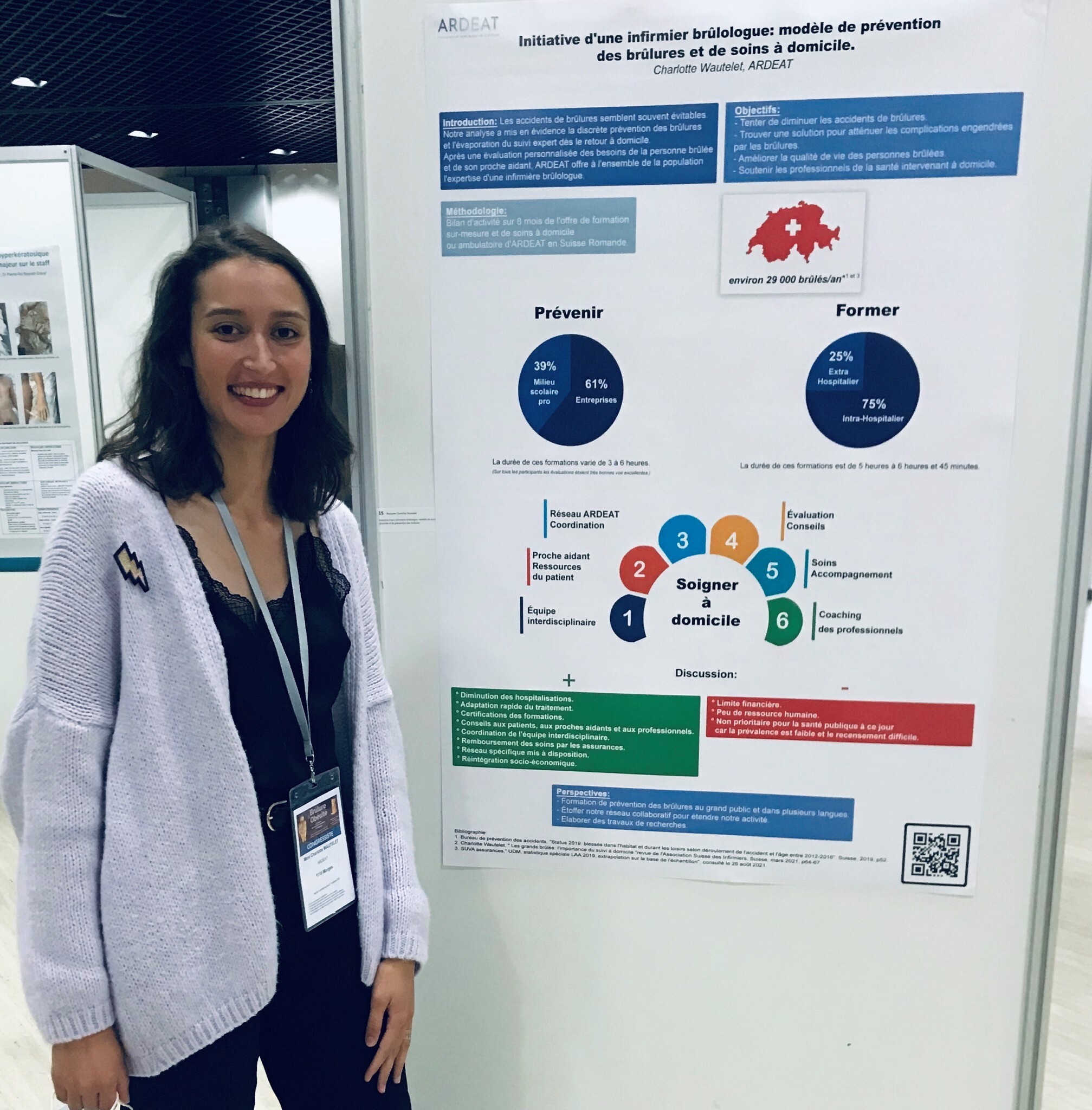 Installée en Suisse depuis presque 10 ans, elle a créé ARDEAT, une structure qui développe des actions de prévention, de formation et d’accompagnement autour du public concerné par la brûlure.