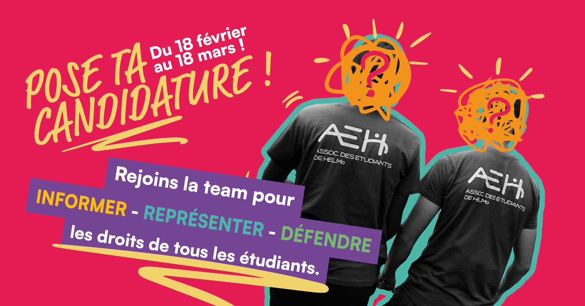 2. Annonce aux étudiants de HELMo que tu es candidat.e aux élections étudiantes de le Haute Ecole. L'AEH peut même te fournir un visuel sympa pour l'occasion !