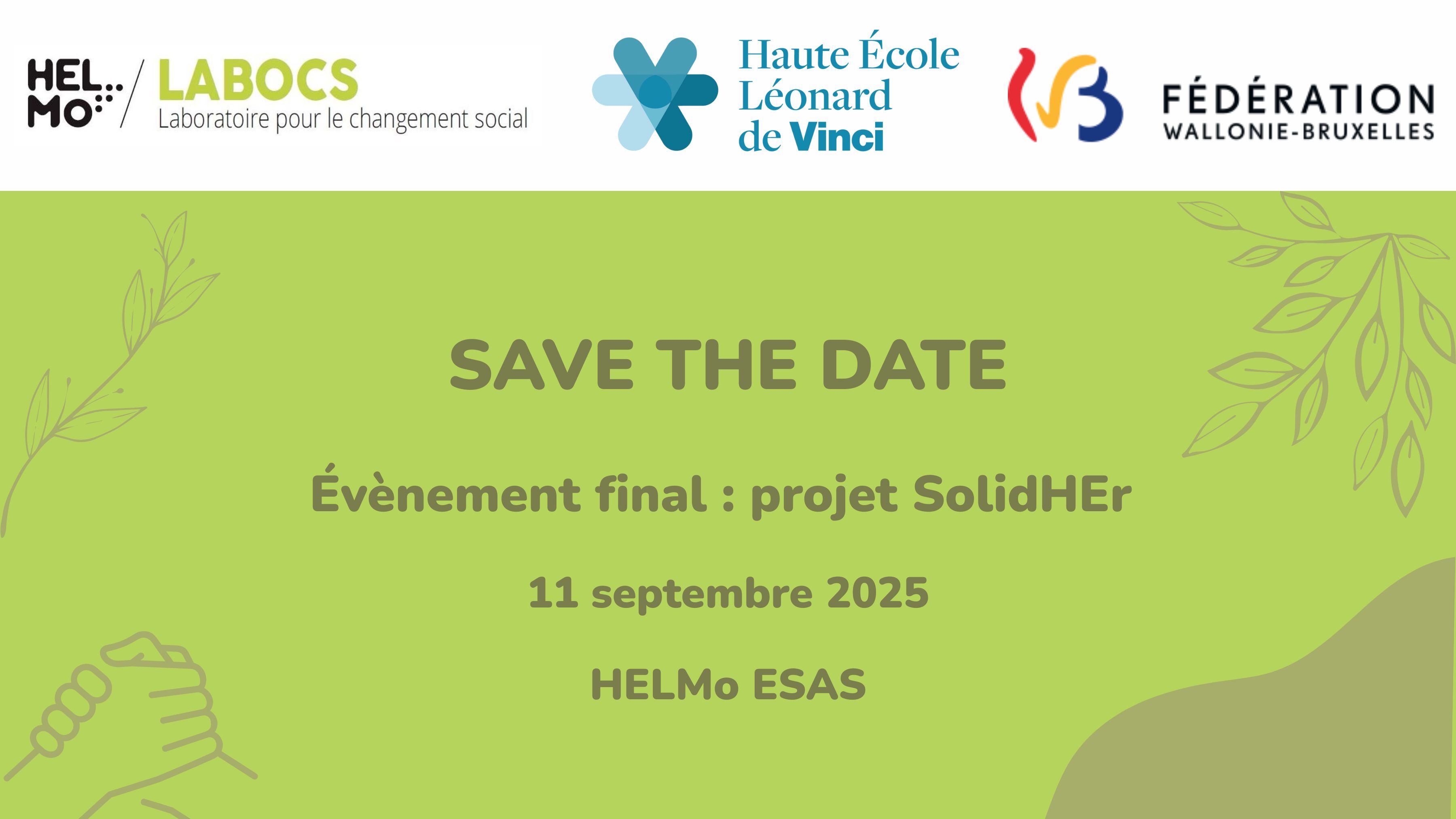 Le jeudi 11 septembre 2025 aura lieu l'événement final du projet de recherche FRHE SolidHEr, mené en collaboration avec la Haute École de Vinci.