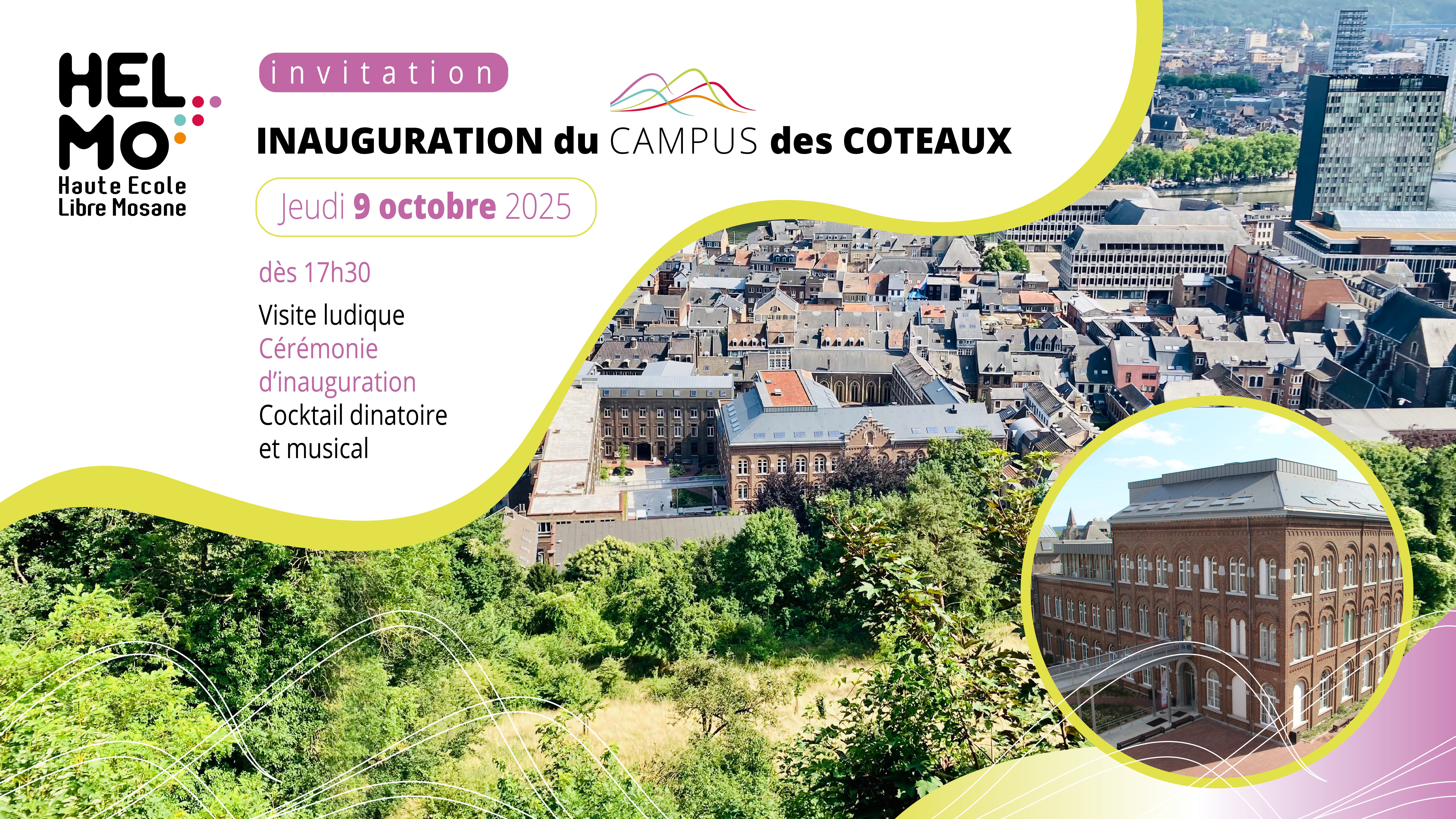 Après presque quatre ans de travaux, HELMo est fière de vous présenter son nouveau campus pédagogique, lors d'une soirée conviviale et festive.
