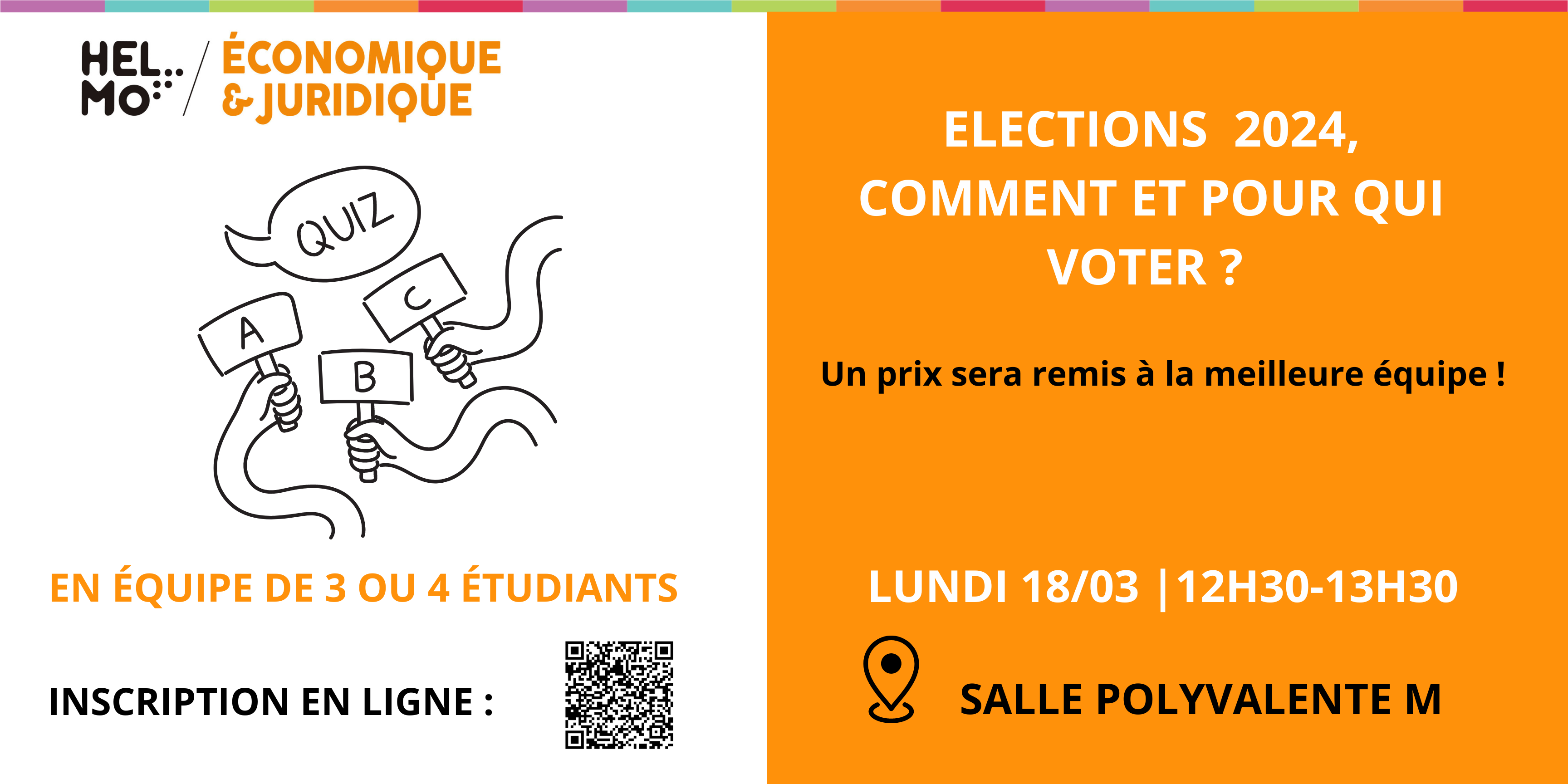 Ce lundi 18 mars, le Campus Guillemins organise un Quiz autour de la thématique des élections. Viens,, avec ton équipe de 3 à 4 étudiants, passer une heure de temps de midi fun, tout en tentant de répondre aux questions en lien avec la thématique. Le quiz est organisé sous forme de Wooclap.