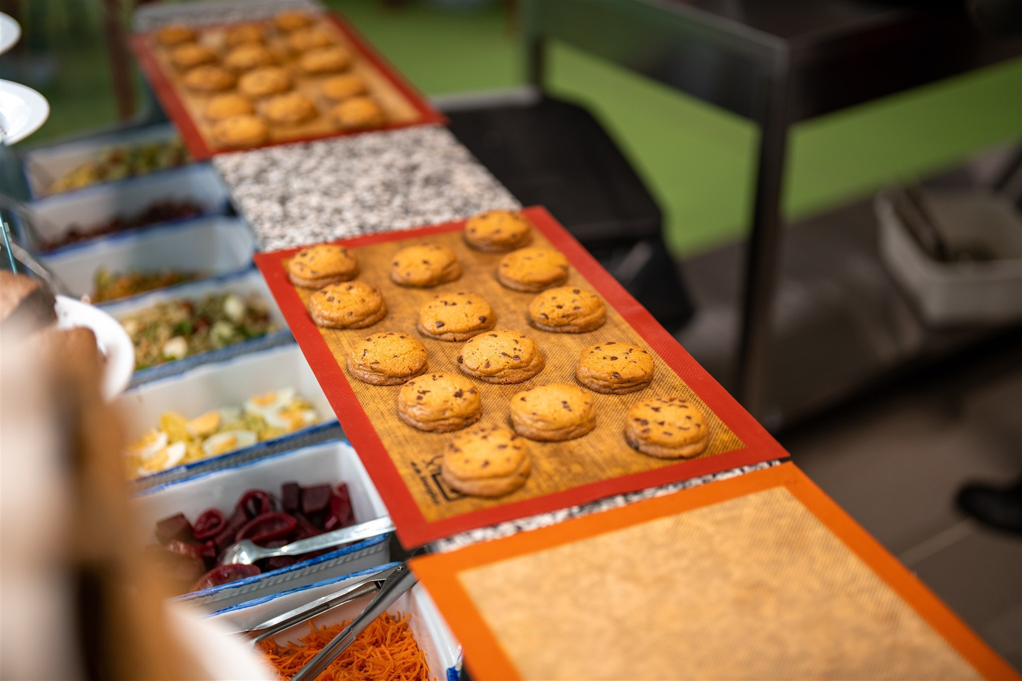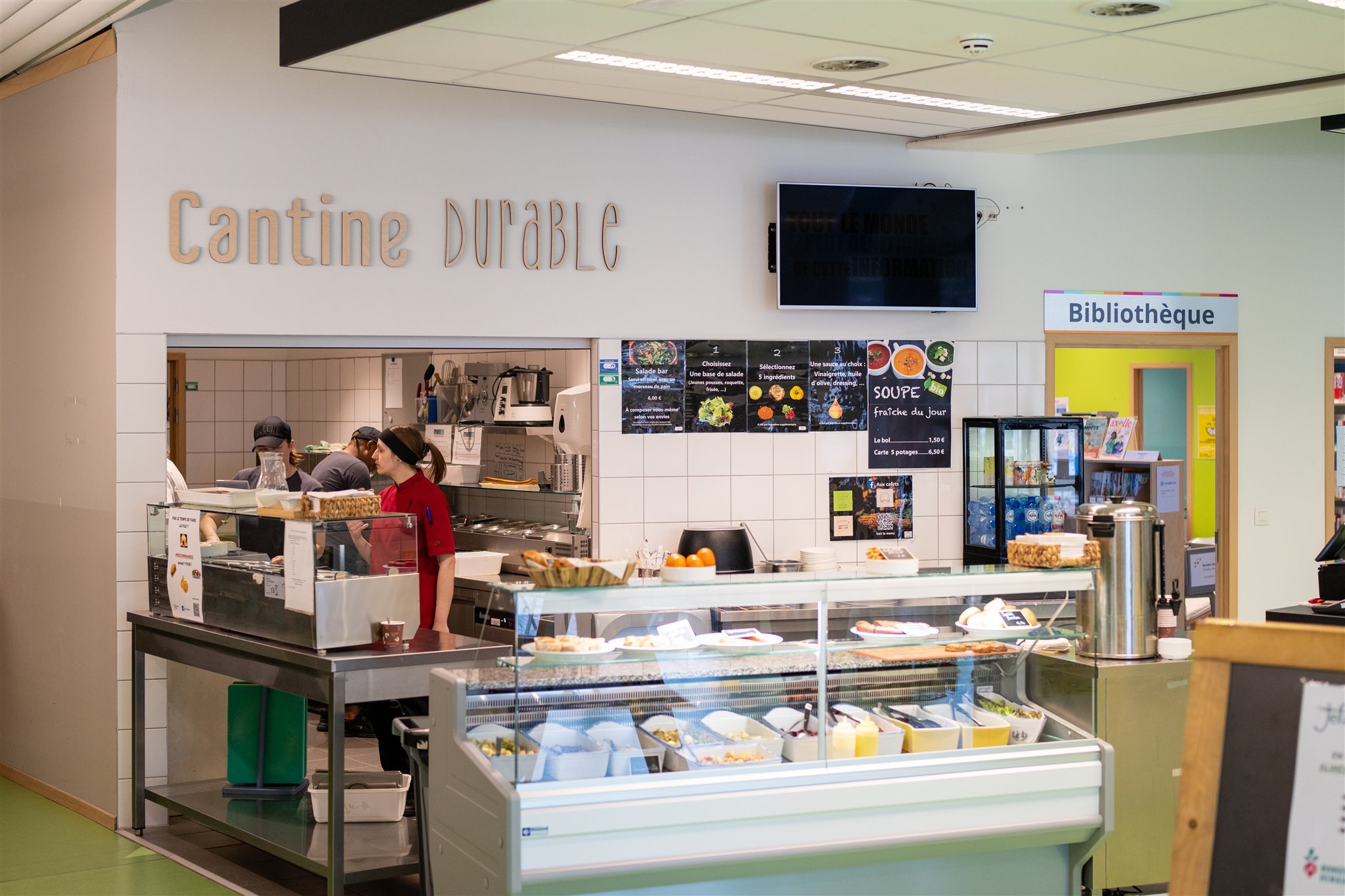 Les cuisiniers travaillent des ingrédients bio et si possible biolocaux via des collaborations avec des producteurs locaux et la Ceinture Aliment-Terre Liégeoise. Découvrez la liste des producteurs partenaires affichée à côté du comptoir ! Une cantine durable a été mise en place avec le soutien du CDCD et Influences Végétales