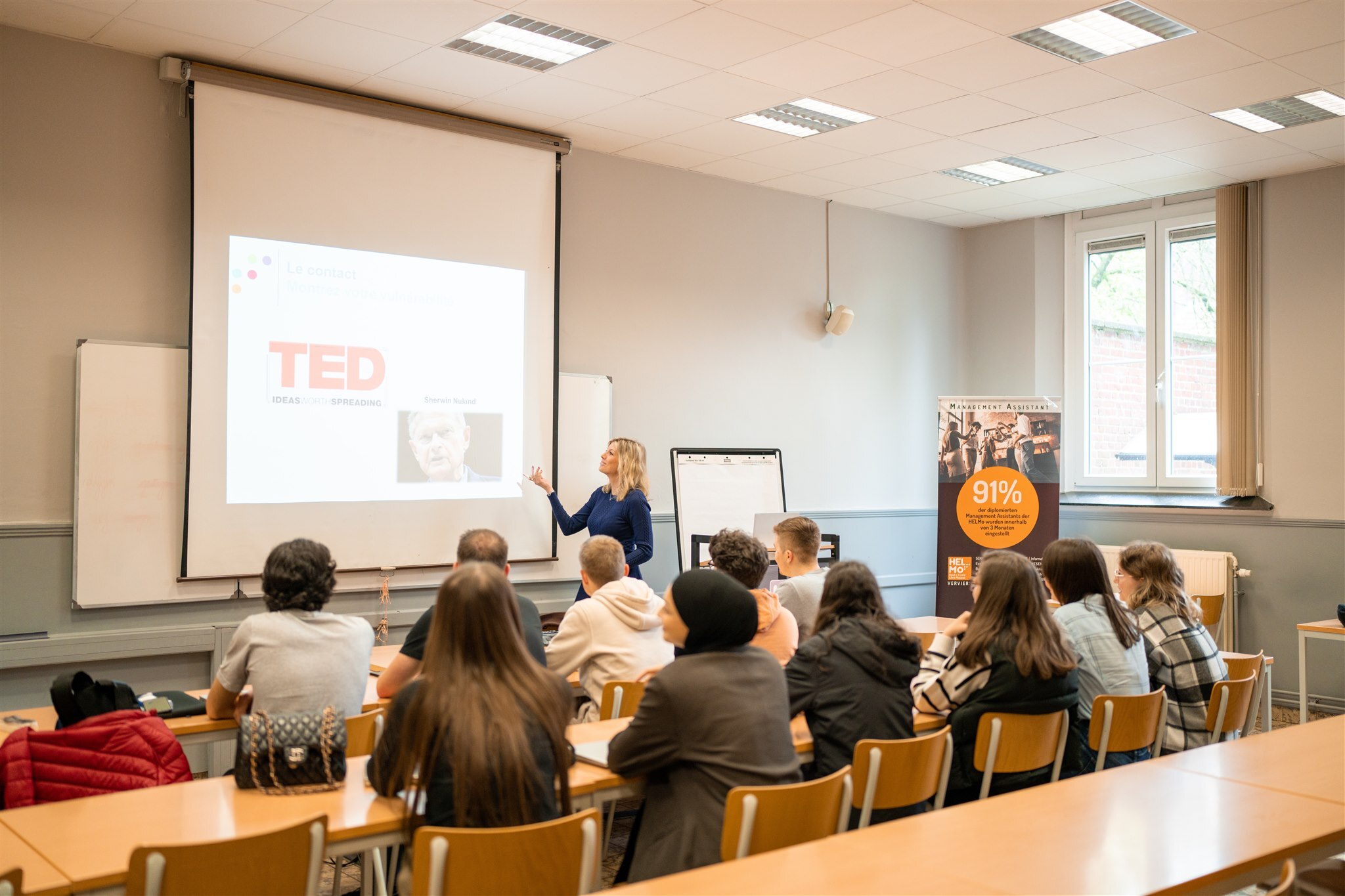 Depuis de nombreuses années, HELMo Verviers organise des échanges avec des Hautes Ecoles de la Communauté flamande. Tout au long des trois années, les étudiants échangent des mails avec un (des) partenaire(s) flamand(s) ou participent à des journées de rencontre. Outre l'aspect linguistique, c'est l'aspect culturel qui est visé. En effet, tisser des liens avec une autre communauté est toujours une source d'enrichissement.