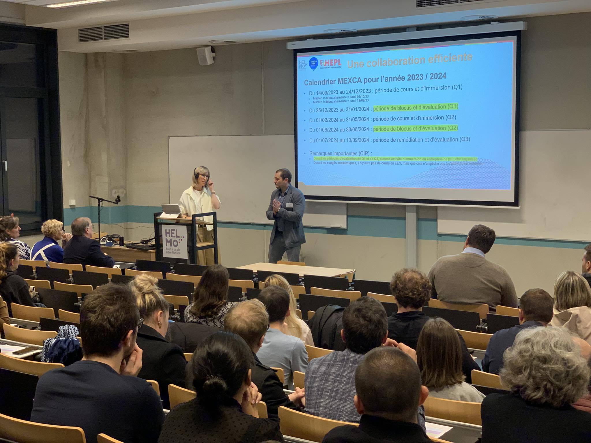 Le jeudi 26 octobre dernier, l’équipe pédagogique du Master en Expertise Comptable & Fiscale organise pour la première fois une conférence hybride visant à expliquer le fonctionnement et les attentes du stage en immersion aux différents acteurs encadrant les étudiants afin d’assurer un encadrement optimal. L’immersion en entreprise à raison de 3 jours par semaine représente une partie importante du cursus de ces étudiants inscrits dans cette formation de Master (120 crédits) innovante & organisée en alternance depuis une année par HELMo, HENALLUX & HEPL.