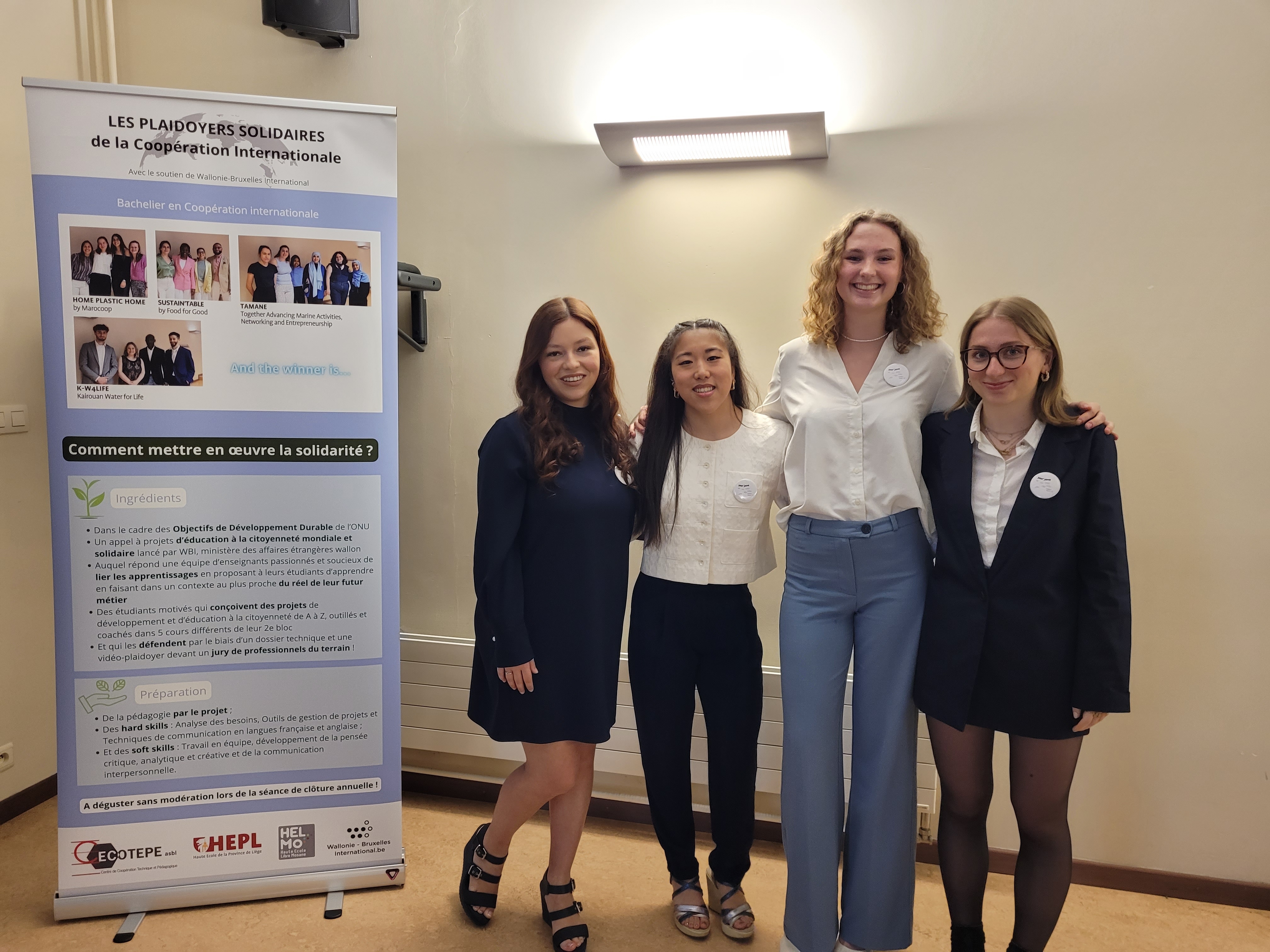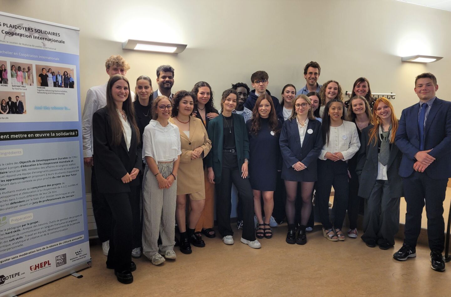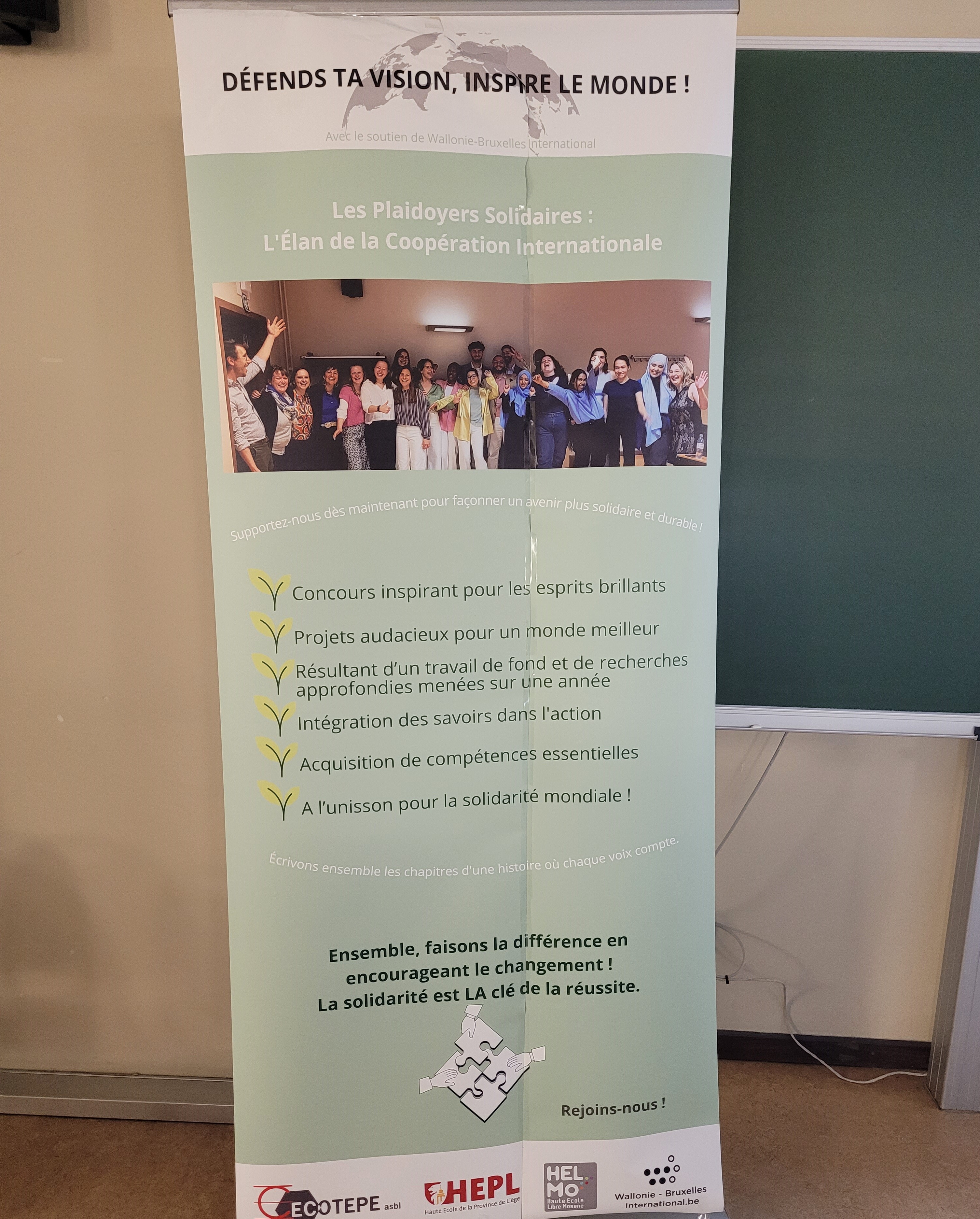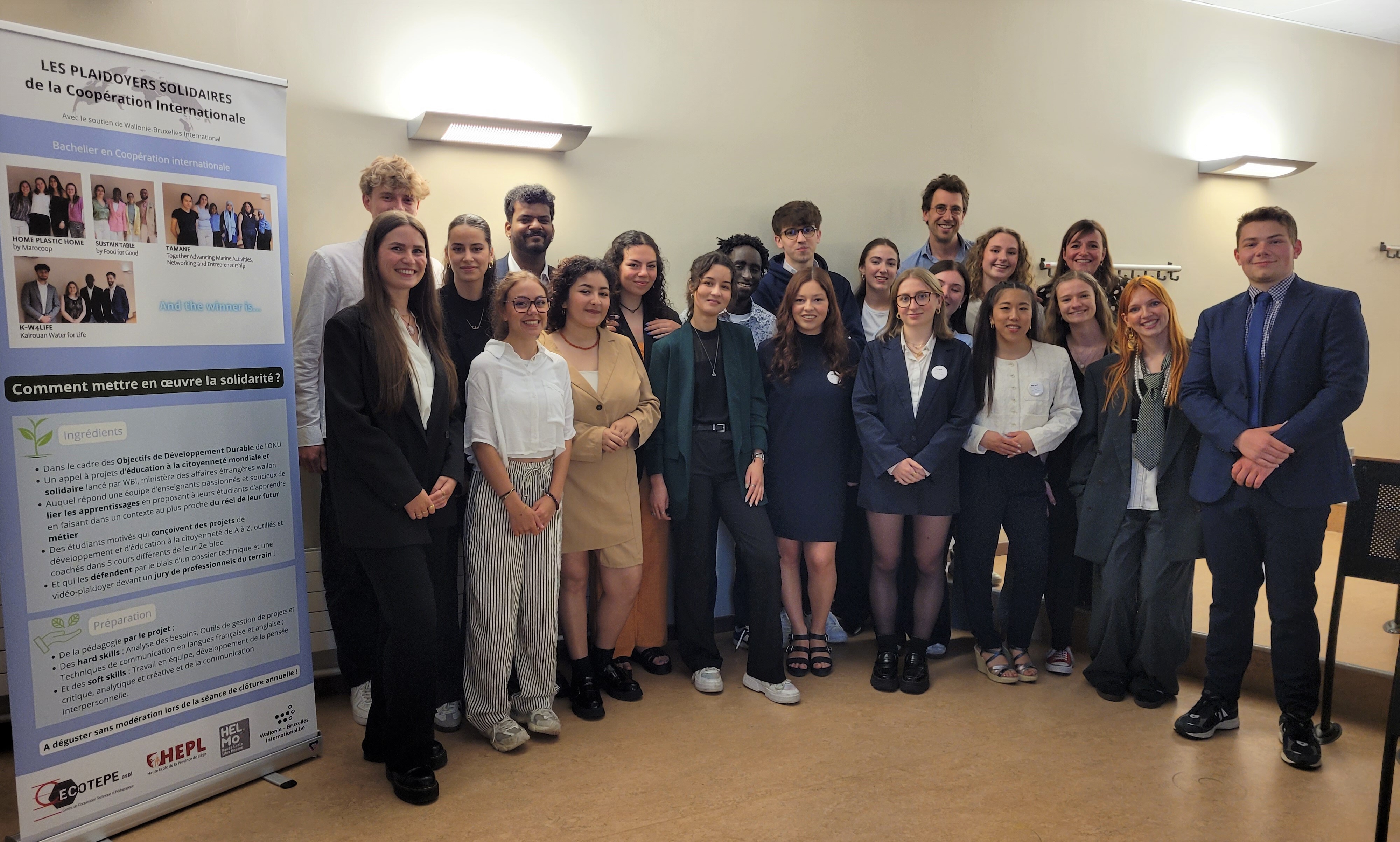 Le vendredi 17 mai 2024 avait lieu la 4e édition des plaidoyers solidaires. Cet événement a rassemblé cinq équipes d'étudiant.e.s du Bachelier en Coopération internationale (Bloc 2), un cursus organisé en co-diplomation avec la HEPL - Haute Ecole de la Province de Liège). Chaque équipe a présenté des vidéos-plaidoyers illustrant leurs projets solidaires, tous imaginés et créés de A à Z.