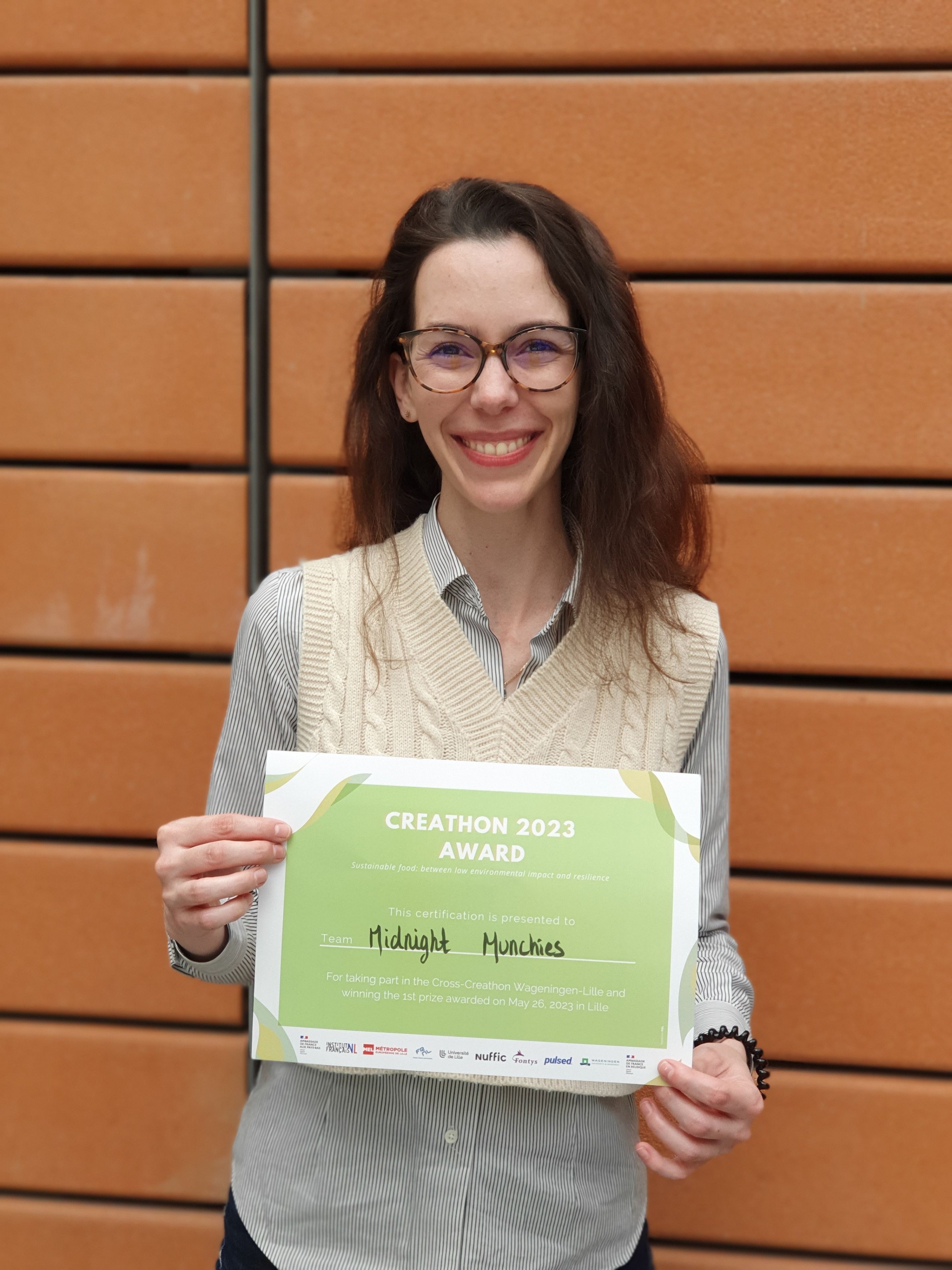Alexia Nectoux, chercheuse à HELMo CRIG dans le cadre du projet de recherche INSECTA, s'est inscrite au Créathon 2023. Elle et son équipe ont remporté le concours grâce à un projet qu'ils ont intitulé "Midnight Munchies".