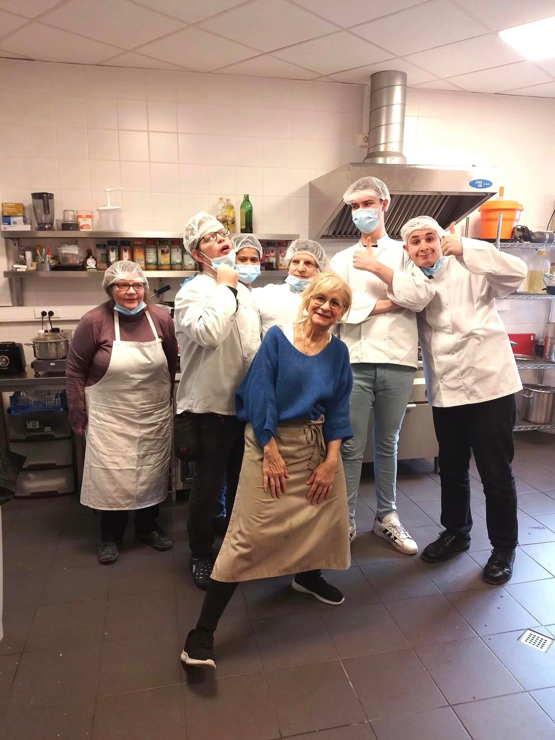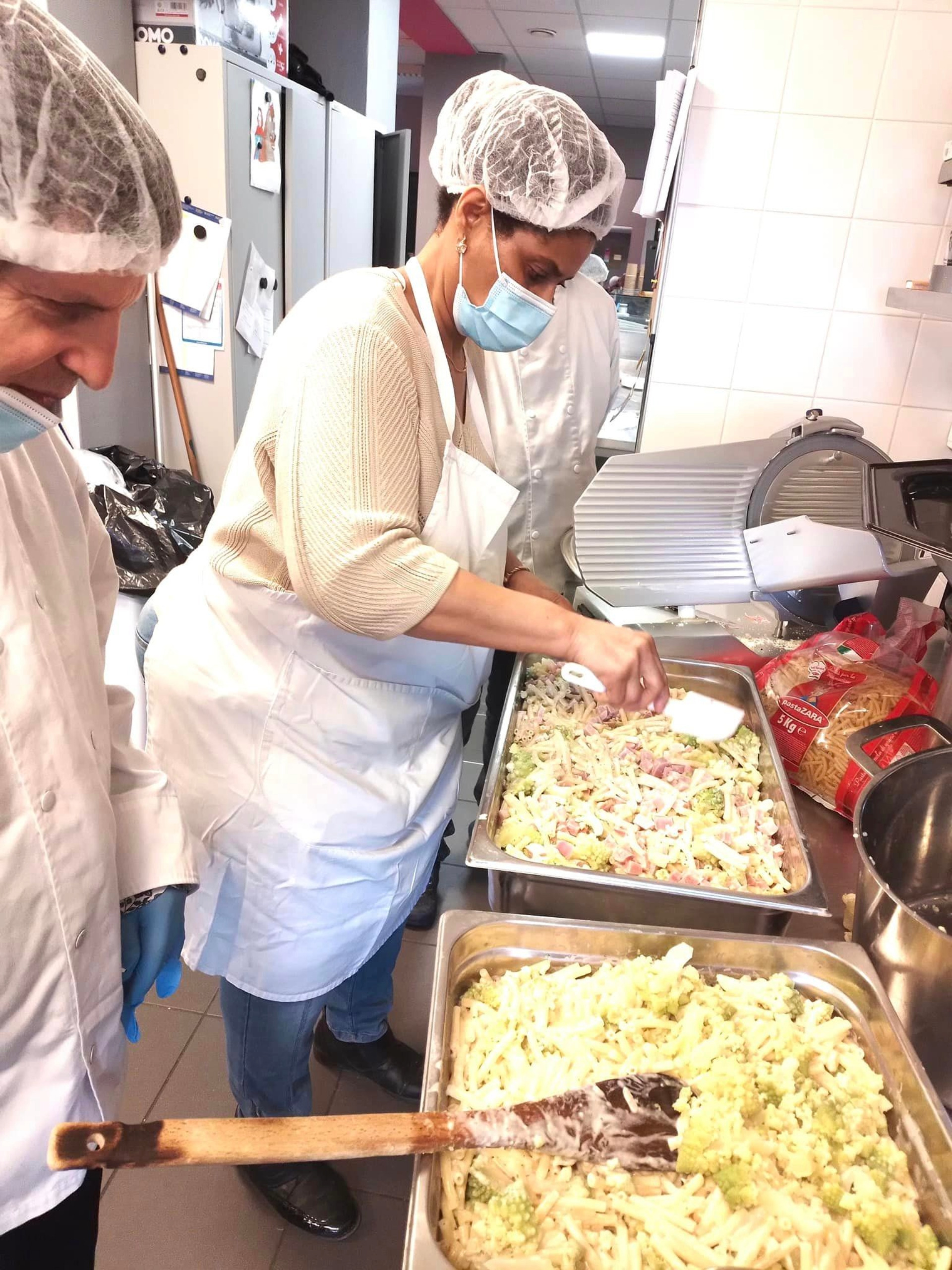 Un groupe de personnes en situation de handicap, accompagné de leur éducatrice, viennent désormais épauler Mano, la responsable de la cantine, tous les vendredis.