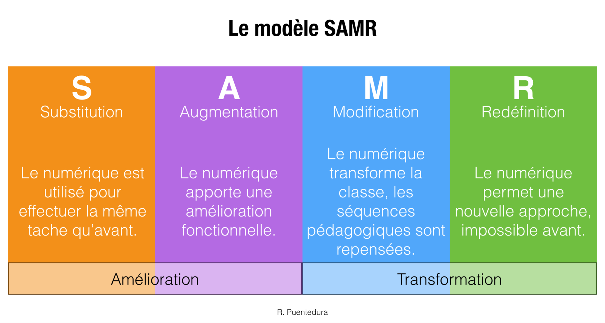 Dès l’introduction, l’enseignant a été invité à se situer par rapport au modèle SAMR qui décrit les différents paliers d’intégration des technologies dans ses pratiques professionnelles et ses scénarios pédagogiques, et ce, depuis qu’il donne cours à distance.