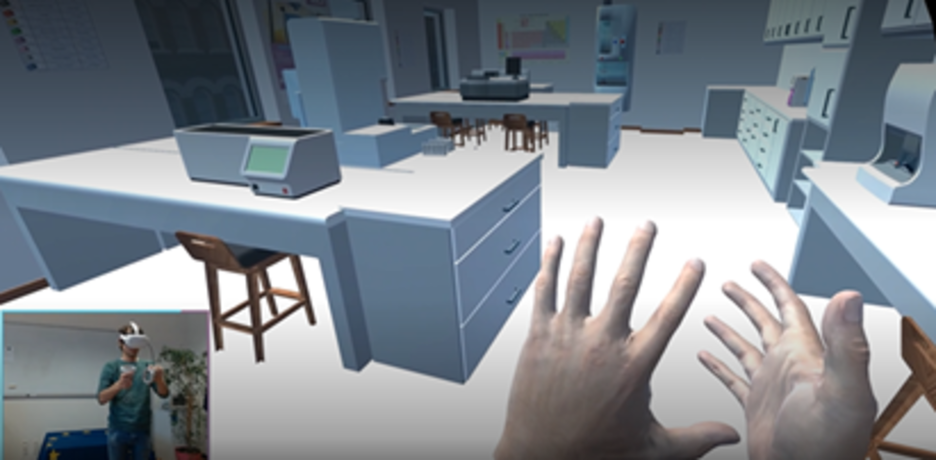 Tout est parti d’un constat rapporté par les étudiants à leur retour de stage. Confrontés à la réalité du terrain et à l’automatisation des laboratoires médicaux, leur cursus semblait manquer d’un volet technologique. Les hautes écoles n’étant pas financièrement en mesure de s’équiper, l’idée d’un laboratoire en réalité virtuelle du type « serious game » était née.