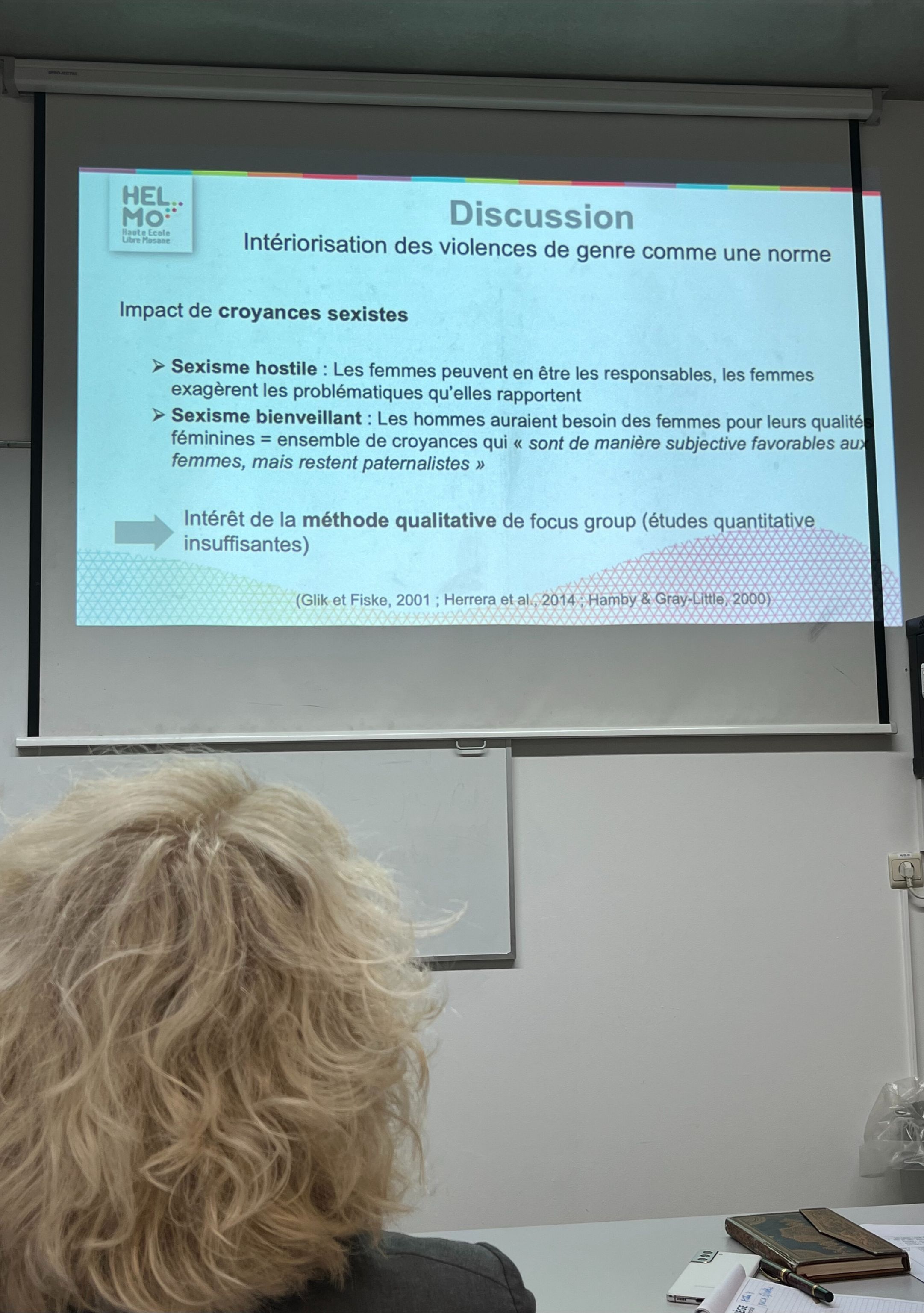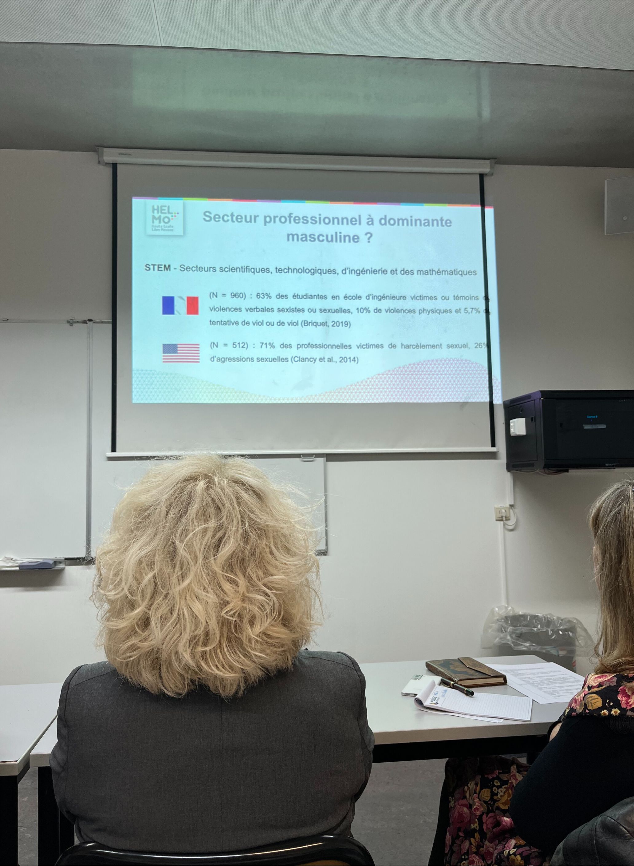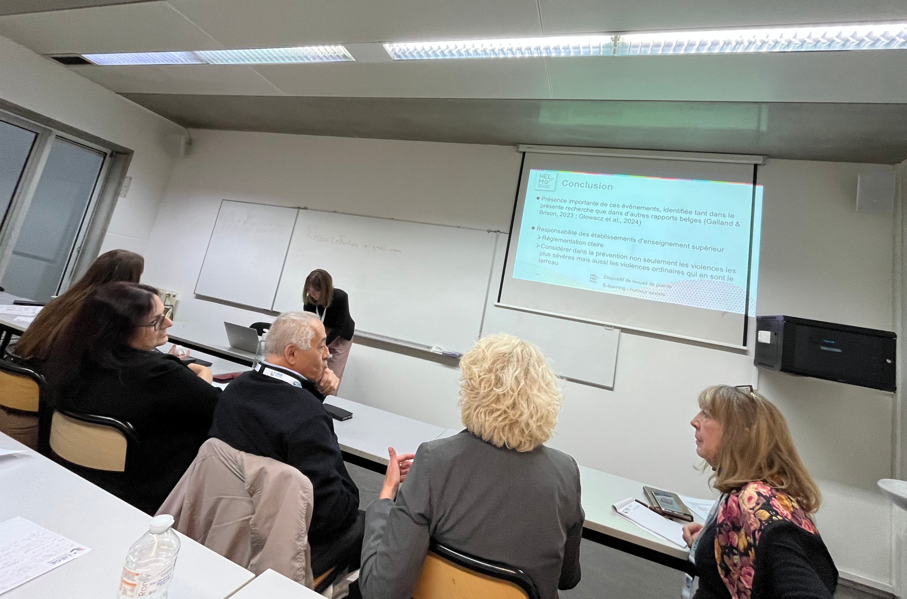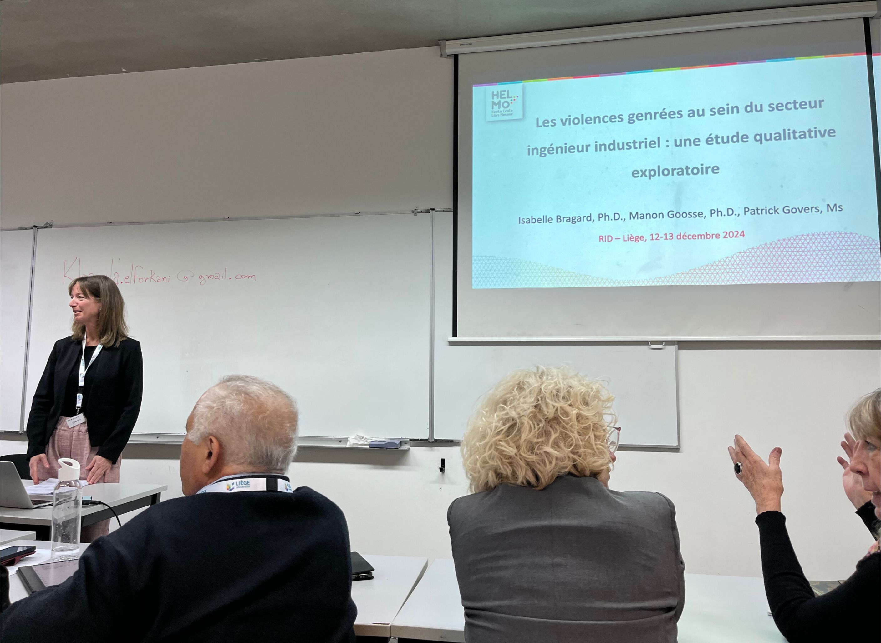 C'était l'occasion pour HELMo Recherche de prendre part au comité organisateur, mais également de participer à un atelier en proposant une présentation orale sur une recherche menée récemment. Isabelle Bragard a ainsi représenté les chercheurs Manon Goosse et Patrick Govers en exposant les objectifs, la méthodologie, les résultats et les pistes soulevées par leur recherche Violences genrées au sein du secteur ingénieur industriel, une étude qualitative exploratoire.