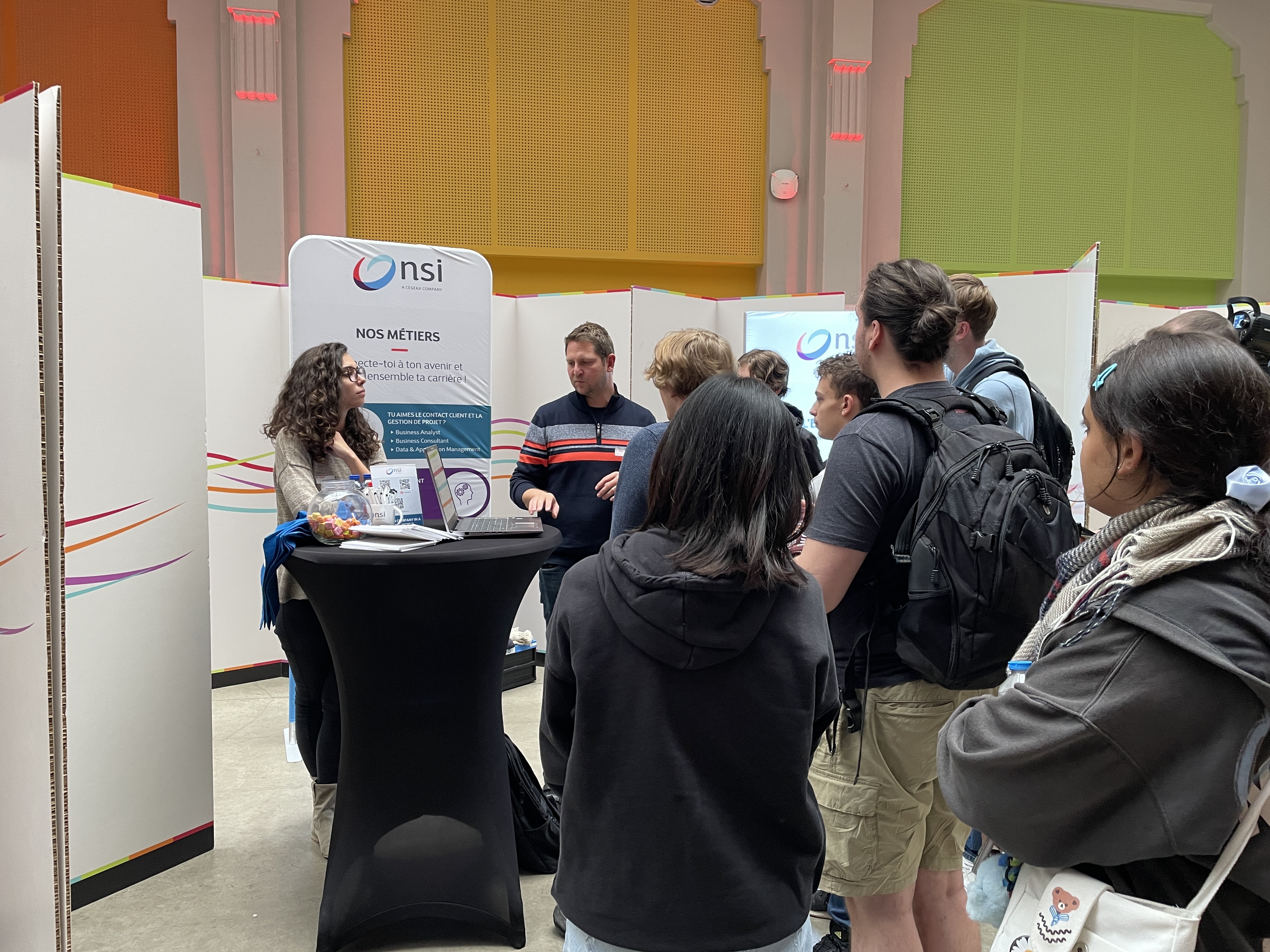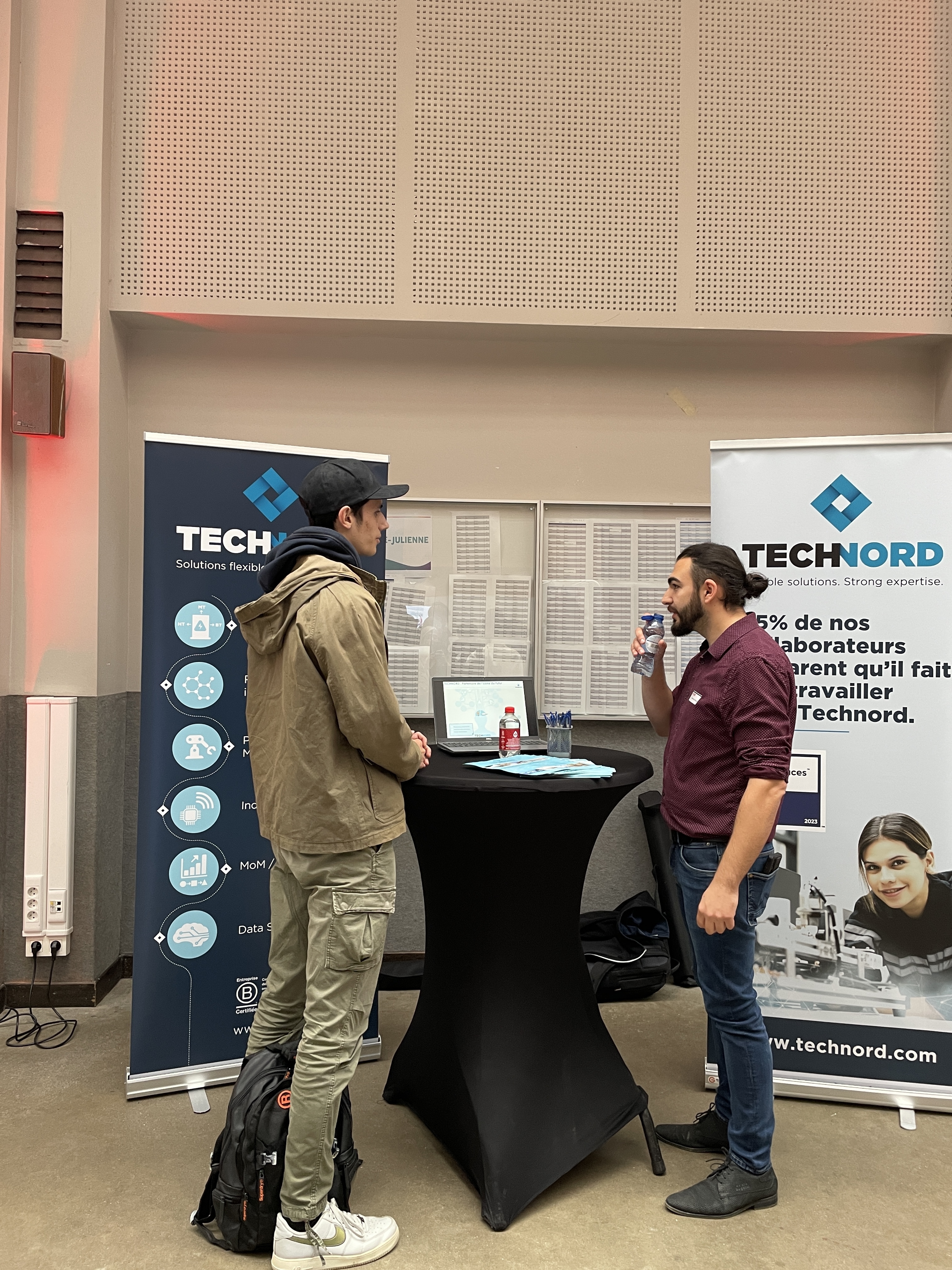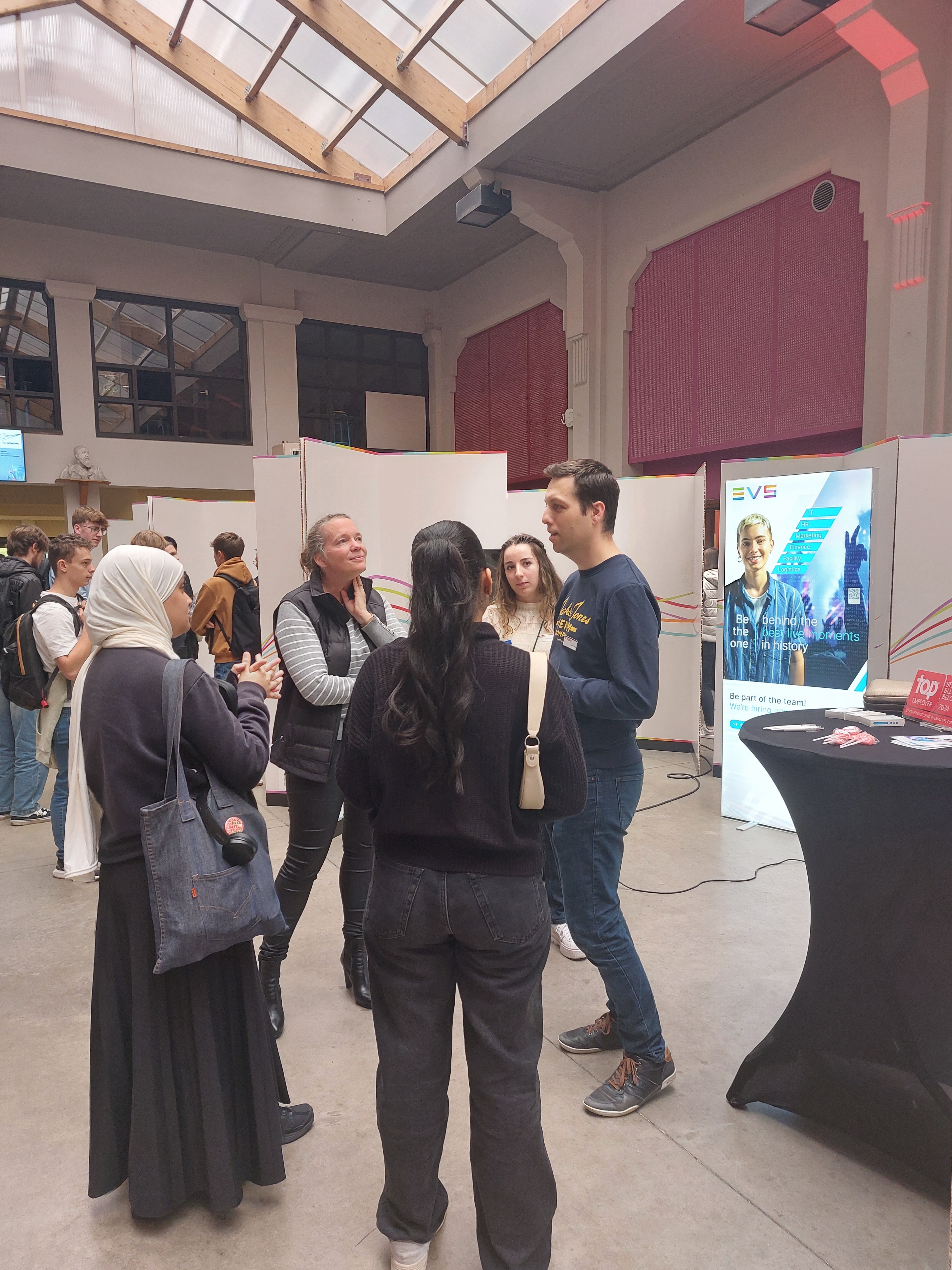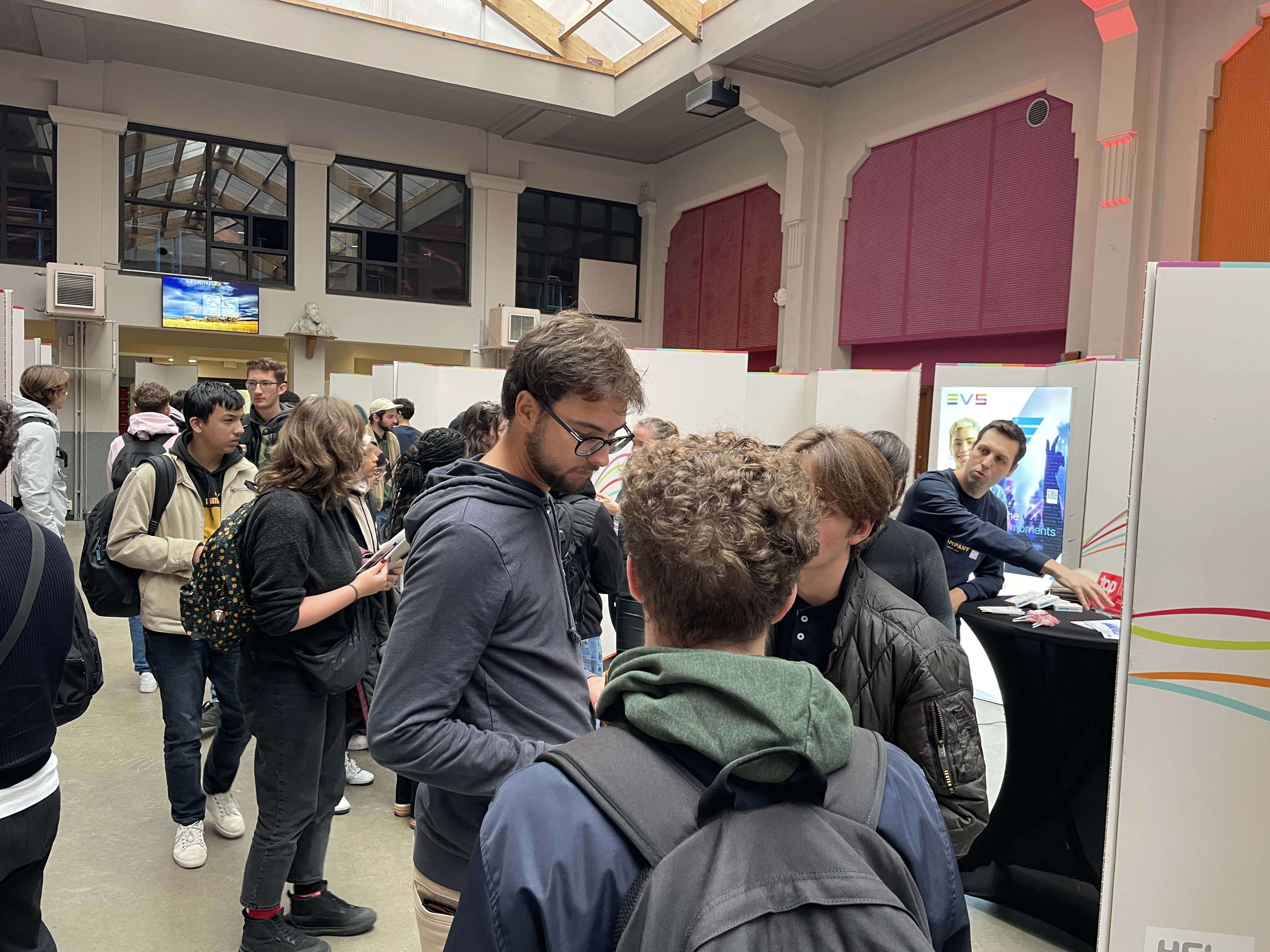 À l’issue de cette présentation, les étudiants ont eu l’opportunité de rencontrer les entreprises présentes dans un cadre plus direct, en visitant les stands installés dans la salle des pas perdus au Campus de l’Ourthe. Cette session de réseautage en face-à-face a été un moment clé pour les jeunes en début de parcours, car elle leur a permis de poser des questions, d'en apprendre davantage sur les métiers qui les intéressent, et de découvrir les environnements de travail des entreprises partenaires.