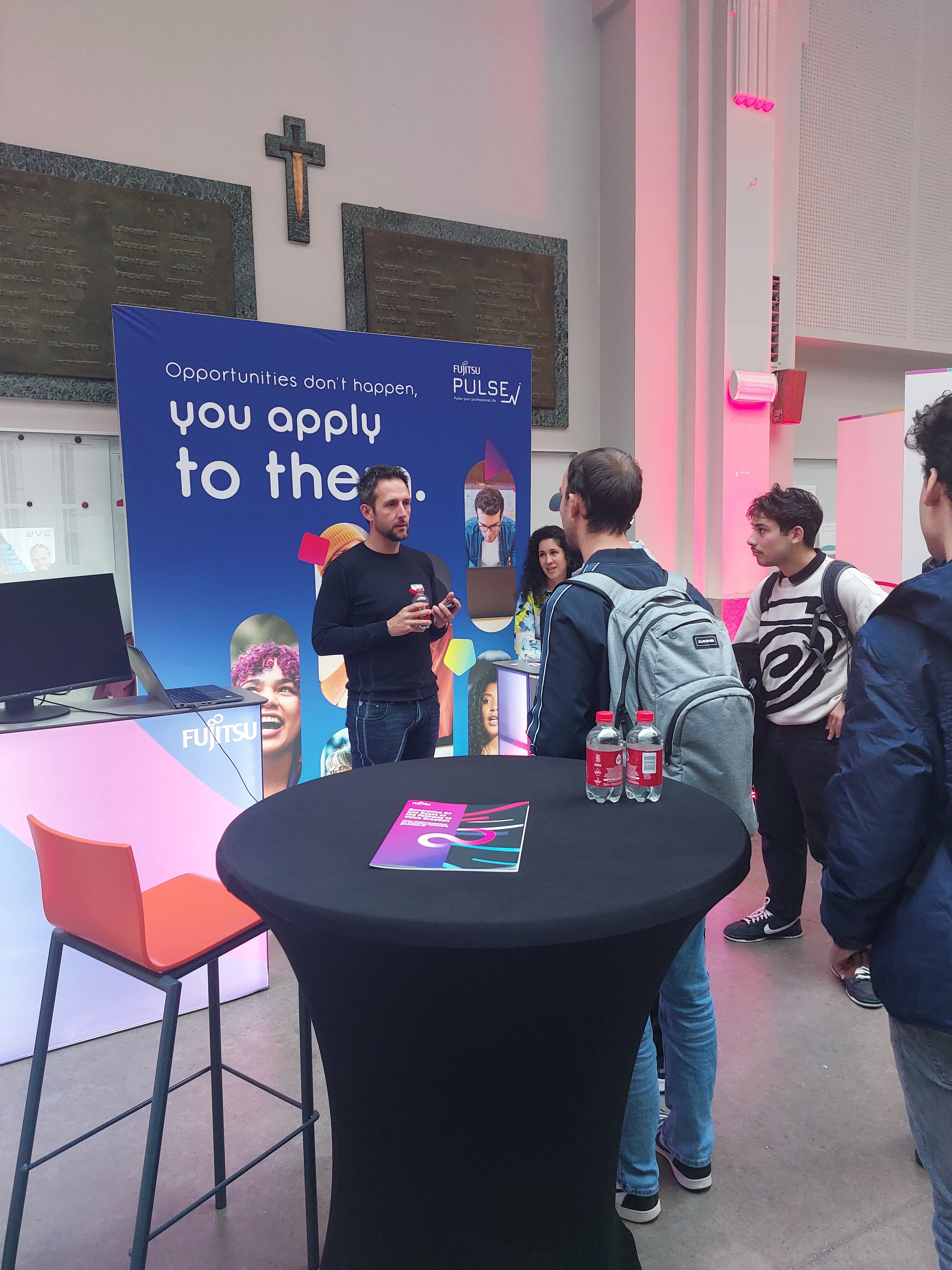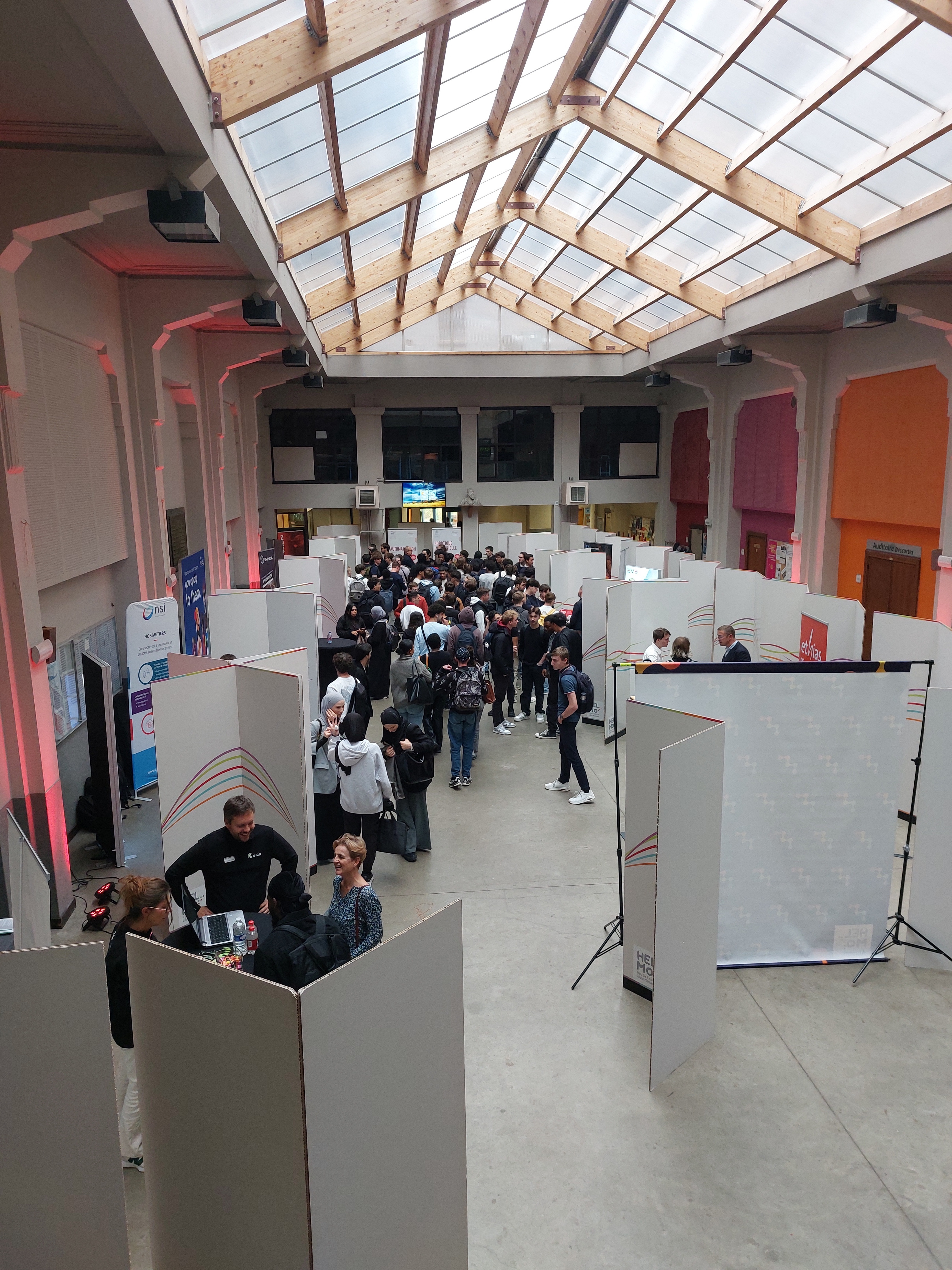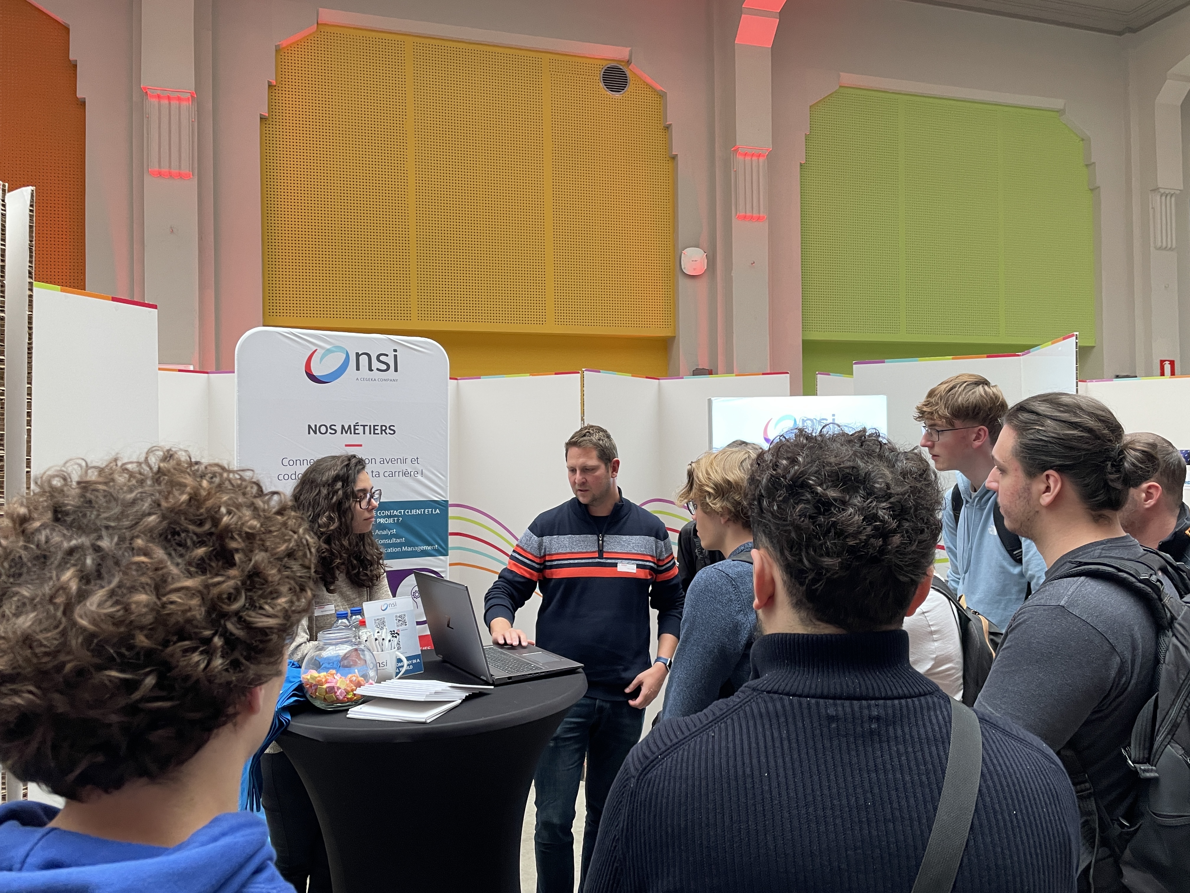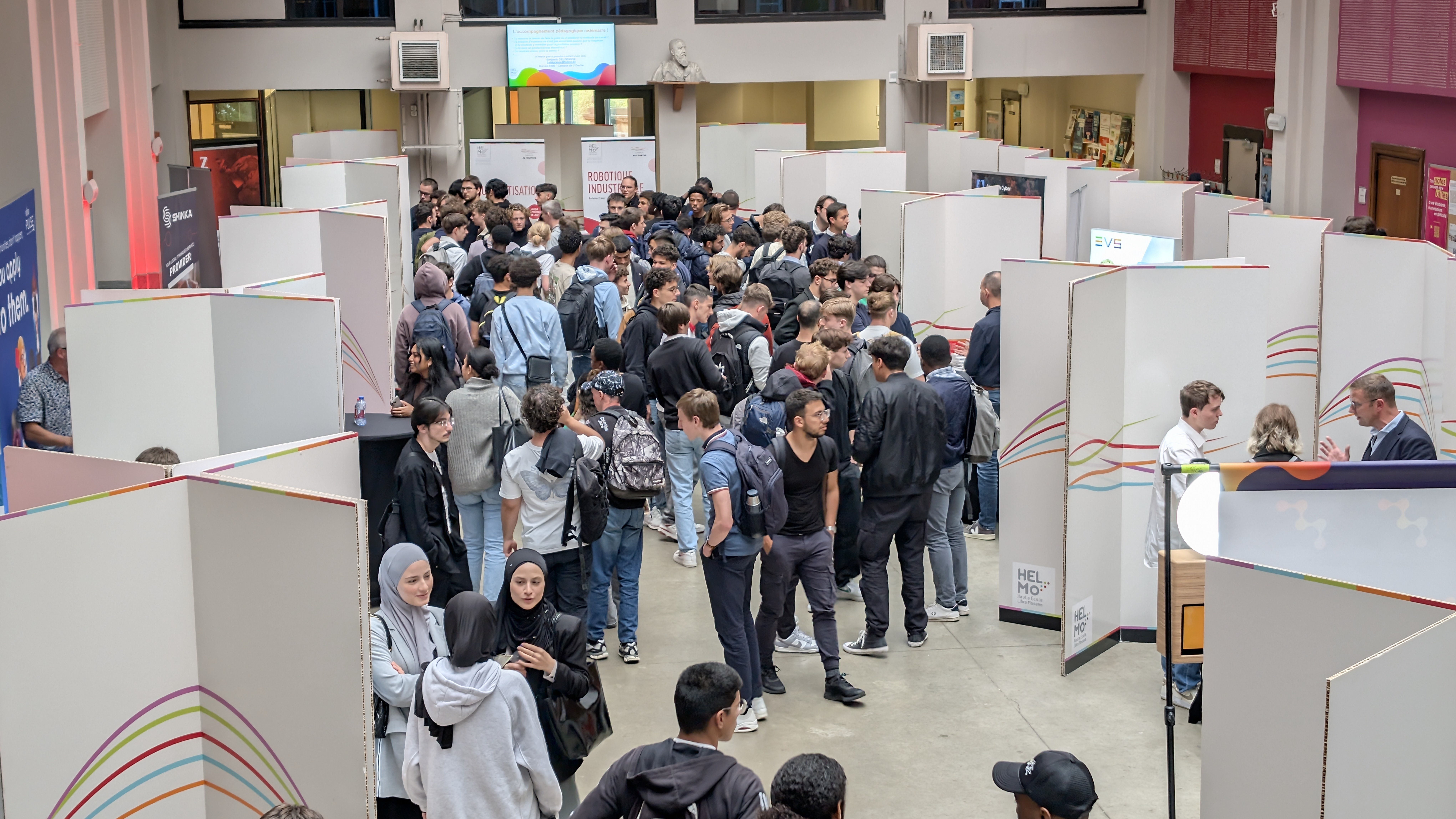 À l’issue de cette présentation, les étudiants ont eu l’opportunité de rencontrer les entreprises présentes dans un cadre plus direct, en visitant les stands installés dans la salle des pas perdus au Campus de l’Ourthe. Cette session de réseautage en face-à-face a été un moment clé pour les jeunes en début de parcours, car elle leur a permis de poser des questions, d'en apprendre davantage sur les métiers qui les intéressent, et de découvrir les environnements de travail des entreprises partenaires.