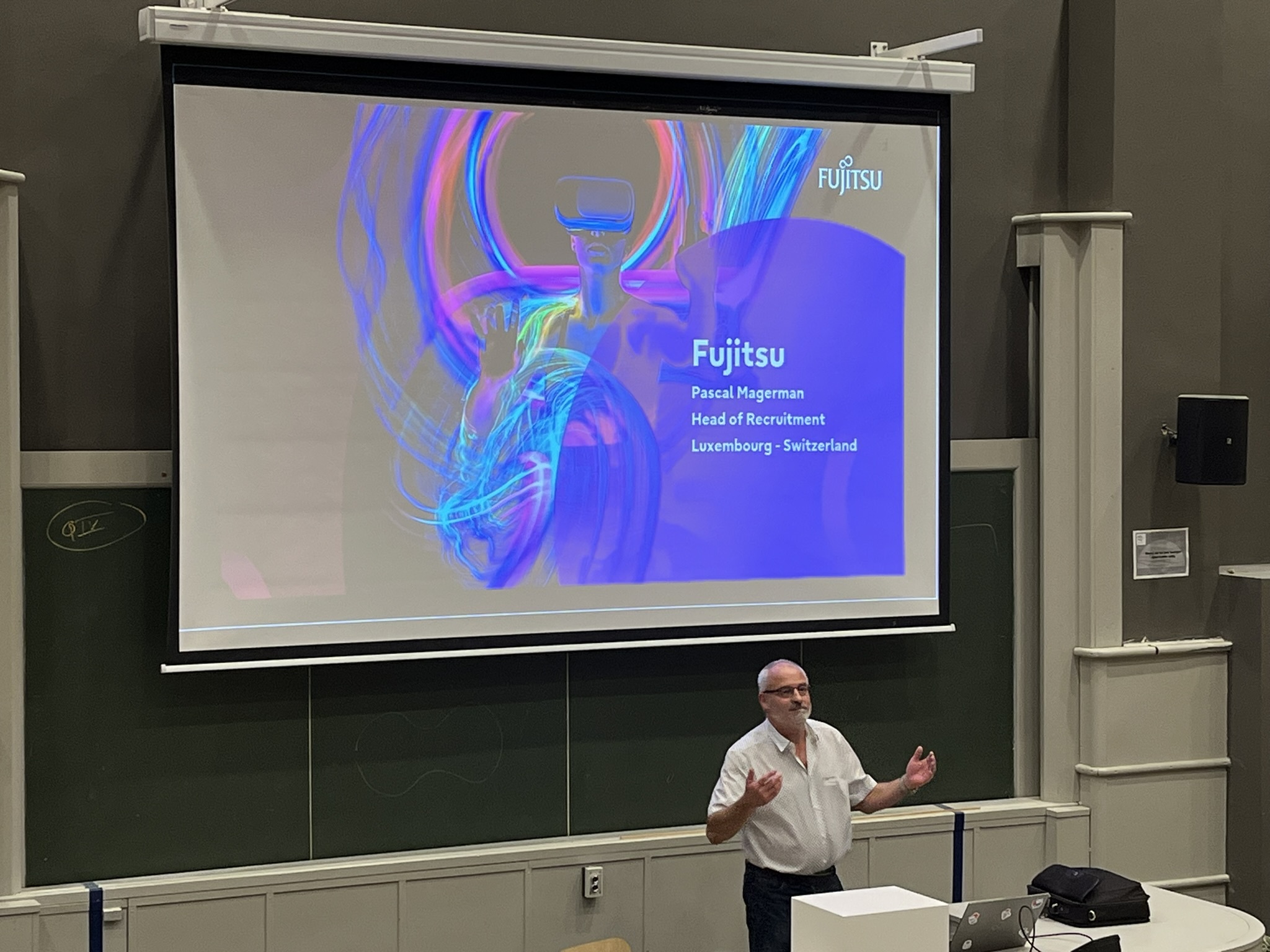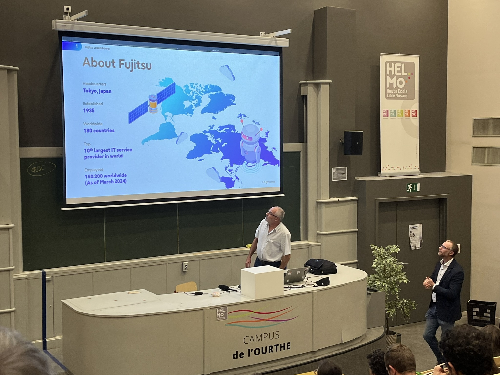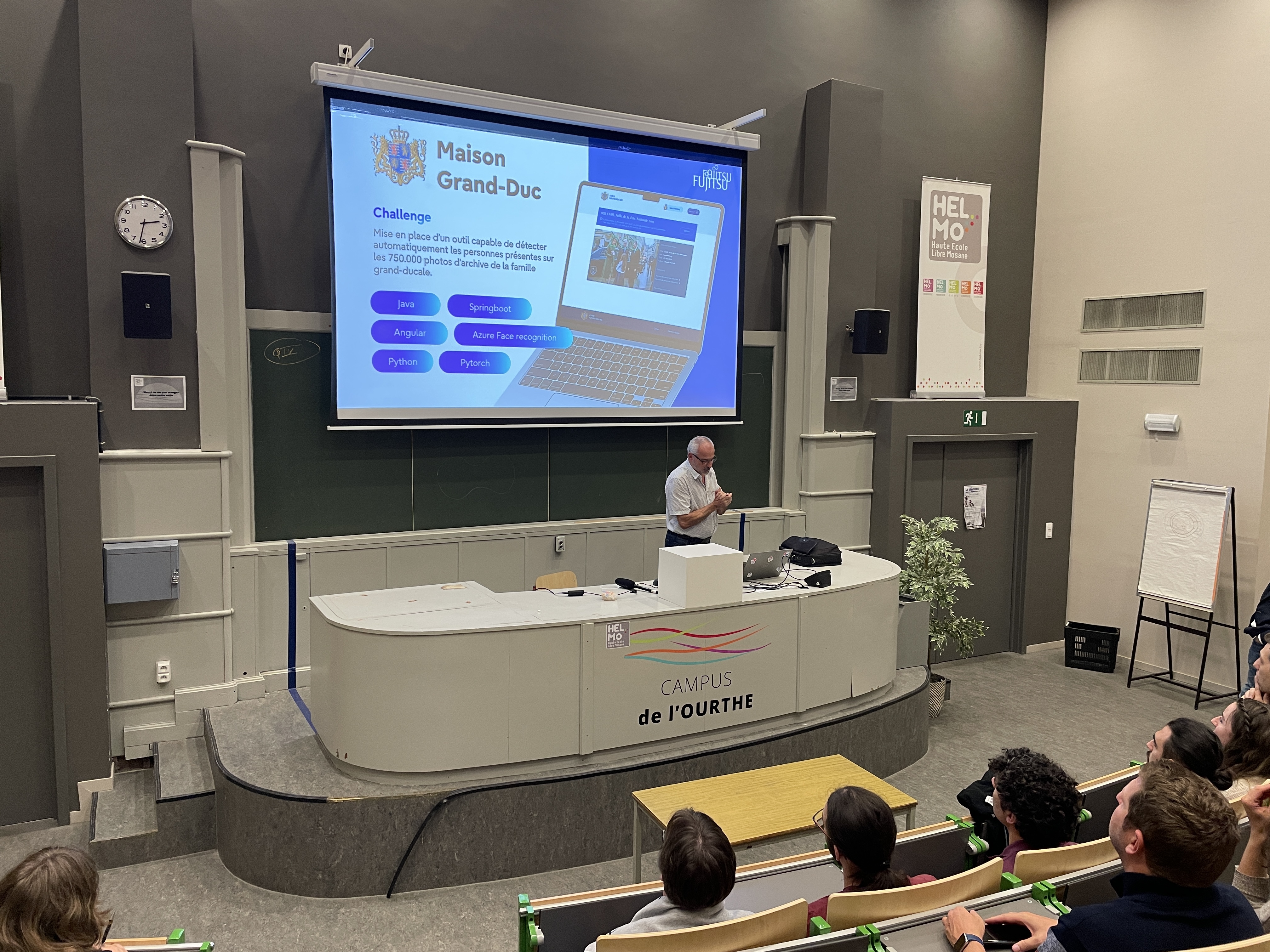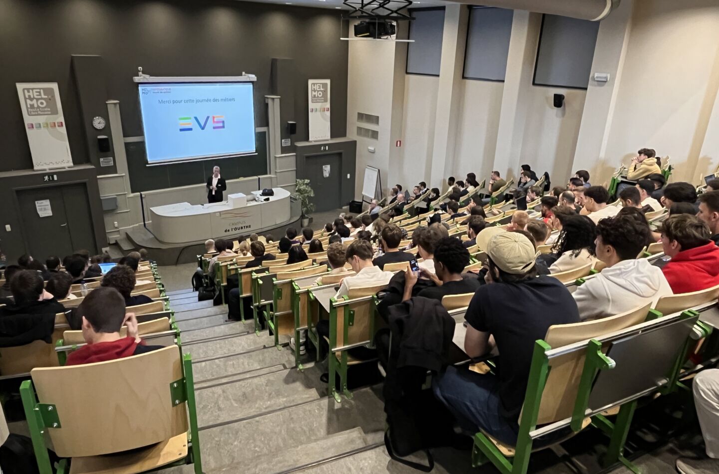De 13h à 16h30, l’après-midi était consacré aux étudiants de 1ère année. Ils ont assisté à une présentation complète des différents profils métiers de l'informatique. Cette session, animée par la direction des cursus d’HELMo en collaboration avec les professionnels des entreprises invitées, avait pour objectif de présenter les profils métiers et les débouchés concrets de chaque orientation et d’illustrer les réalités du monde professionnel.