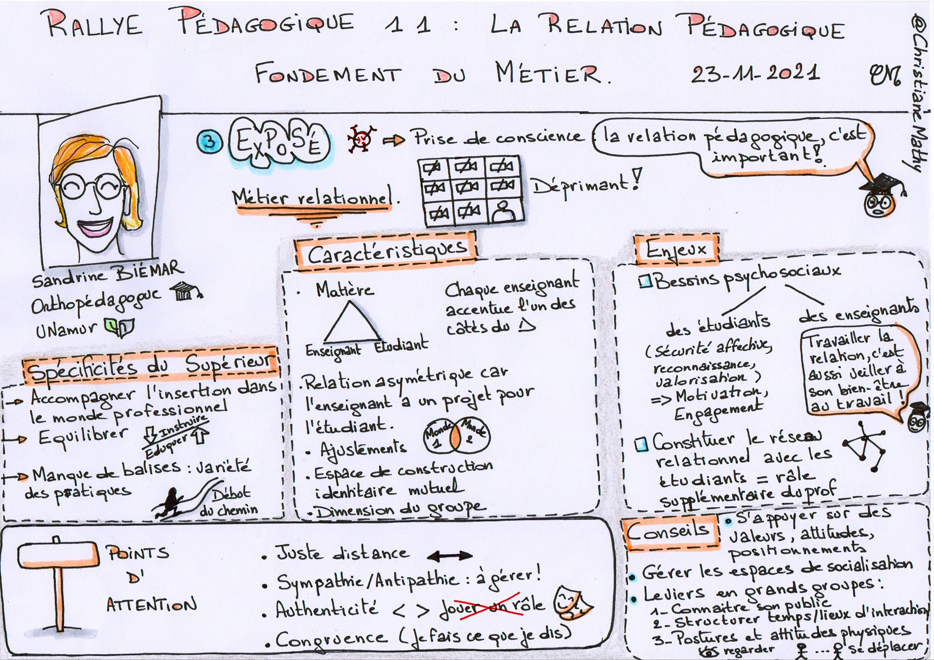 Sandrine Biemar « Interroge la facette relationnelle du métier d’enseignant dans le supérieur : quelles relations pédagogiques construire, pour quoi et avec quelles balises ? » .