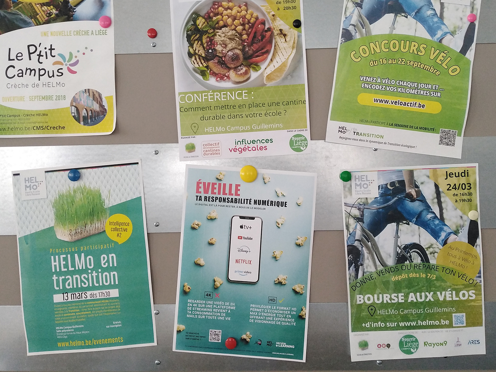 - D'autres projets, tels que les cantines durables, la mobilité, les formations à la transition sont menés par l'équipe de HELMo en transition.