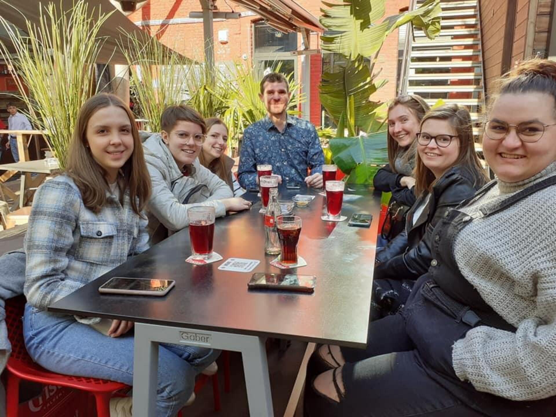 Ensuite, un jeu de piste nous a fait nous promener dans la Cité ardente, avec entrain d'autant plus que le soleil était au rendez-vous. À la fin du jeu, nous avons partagé un verre et une planche apéritive tous ensemble, professeurs et élèves, à la terrasse Latina dans le Carré.