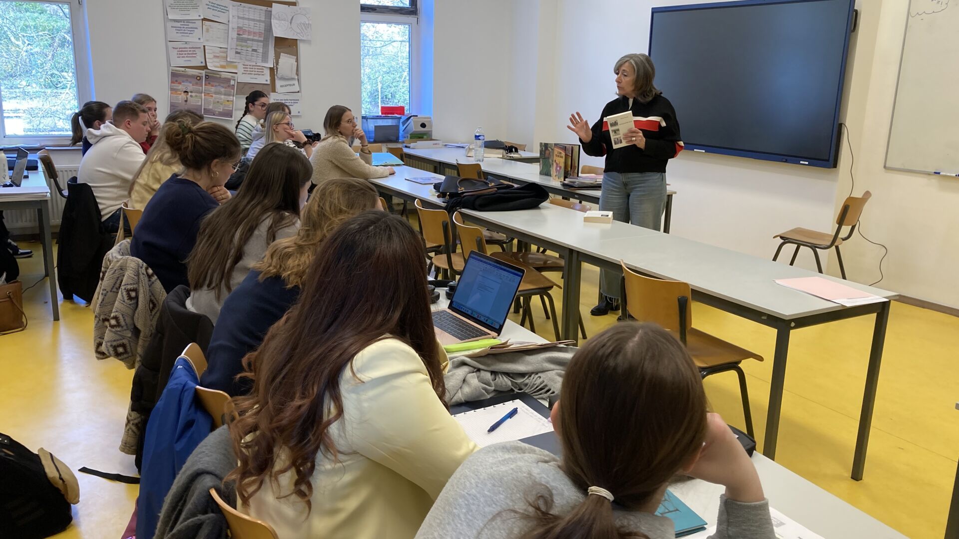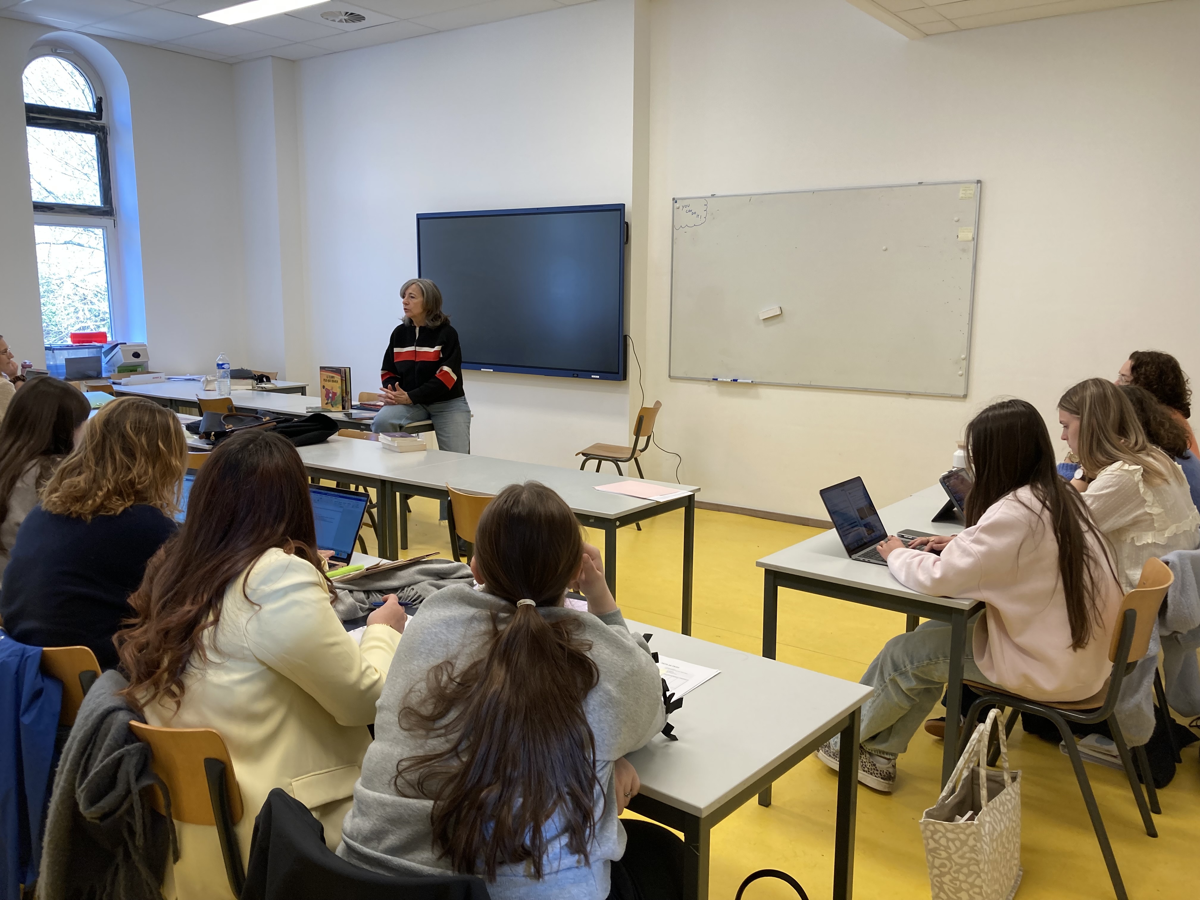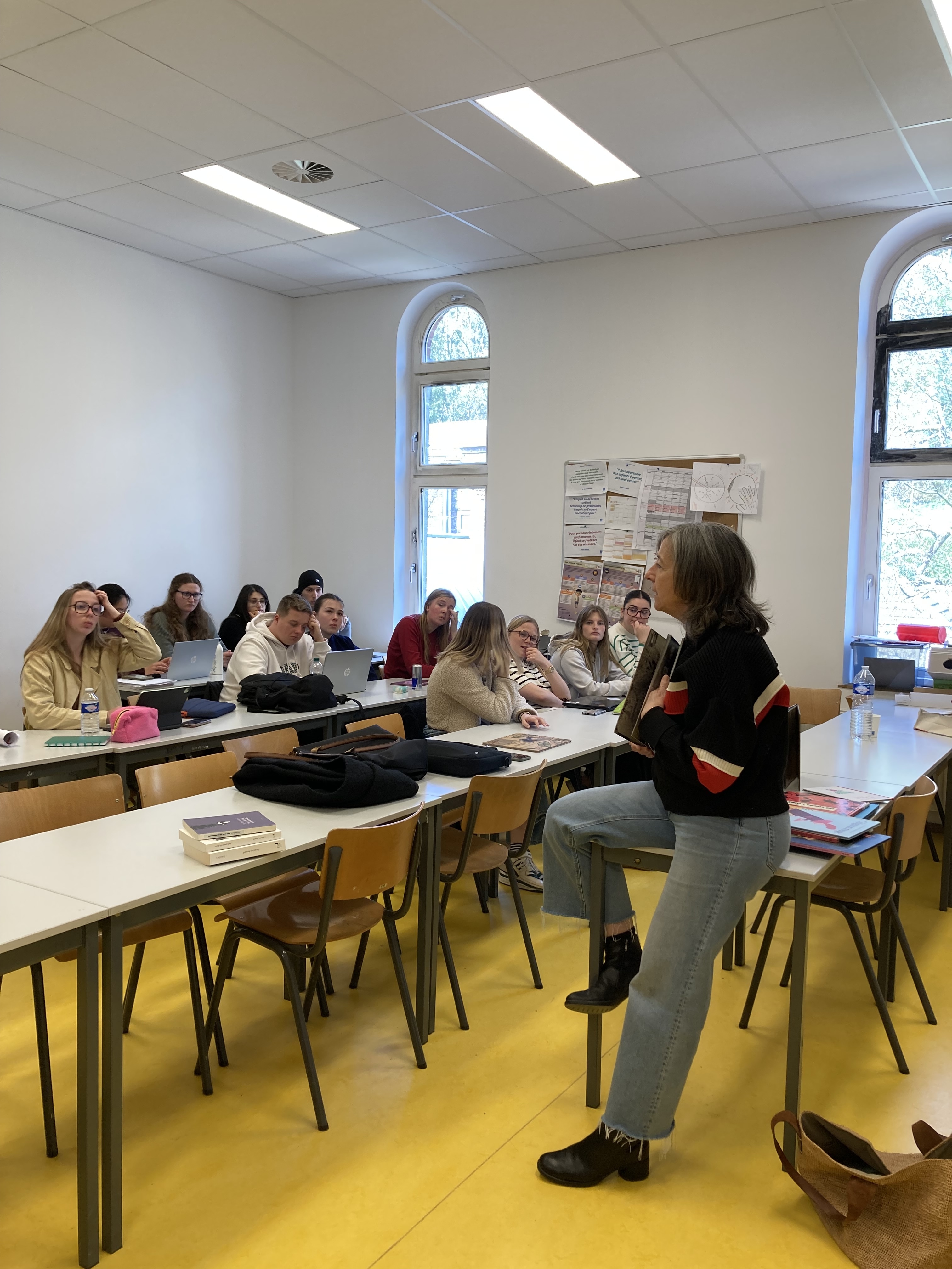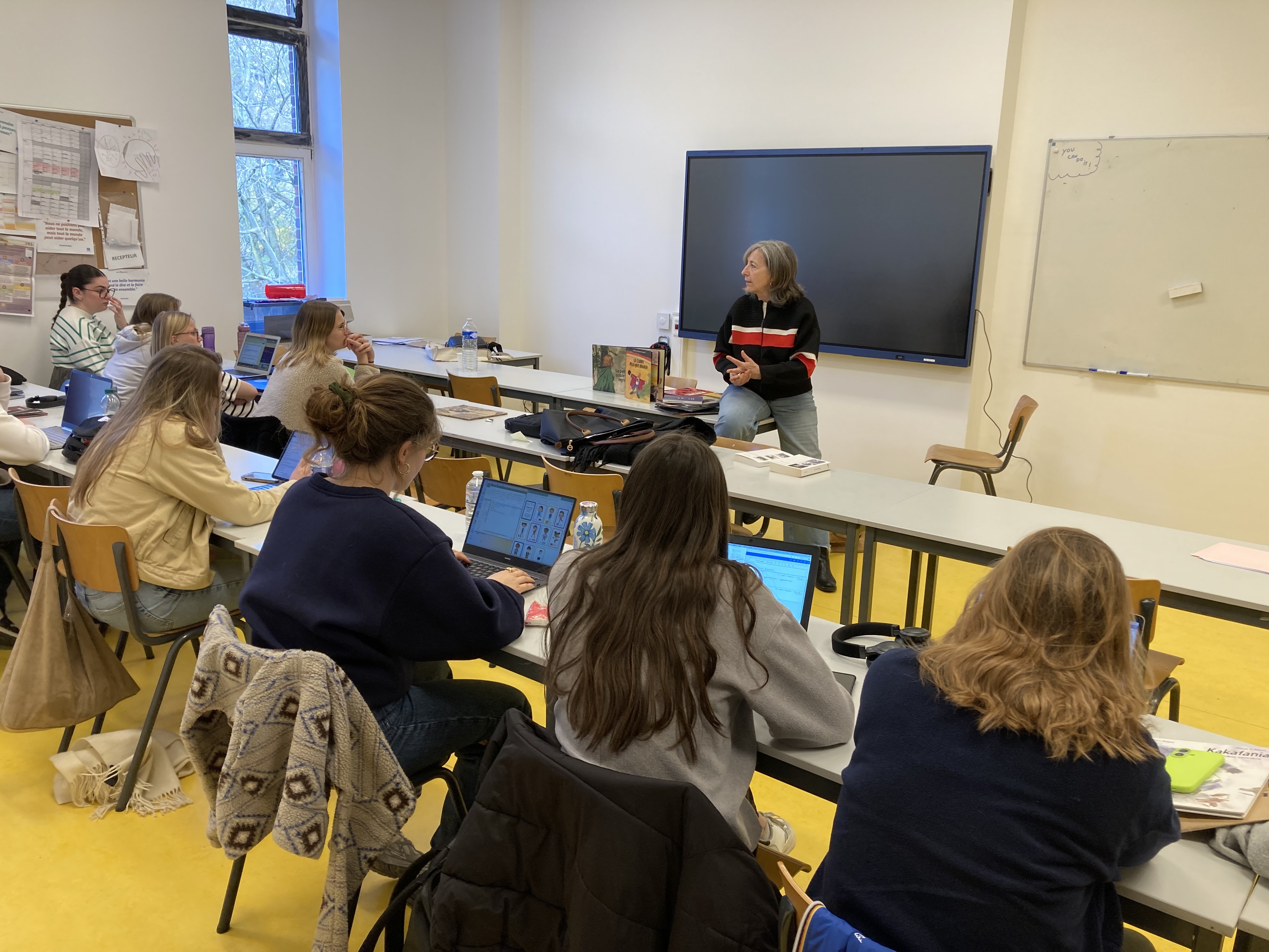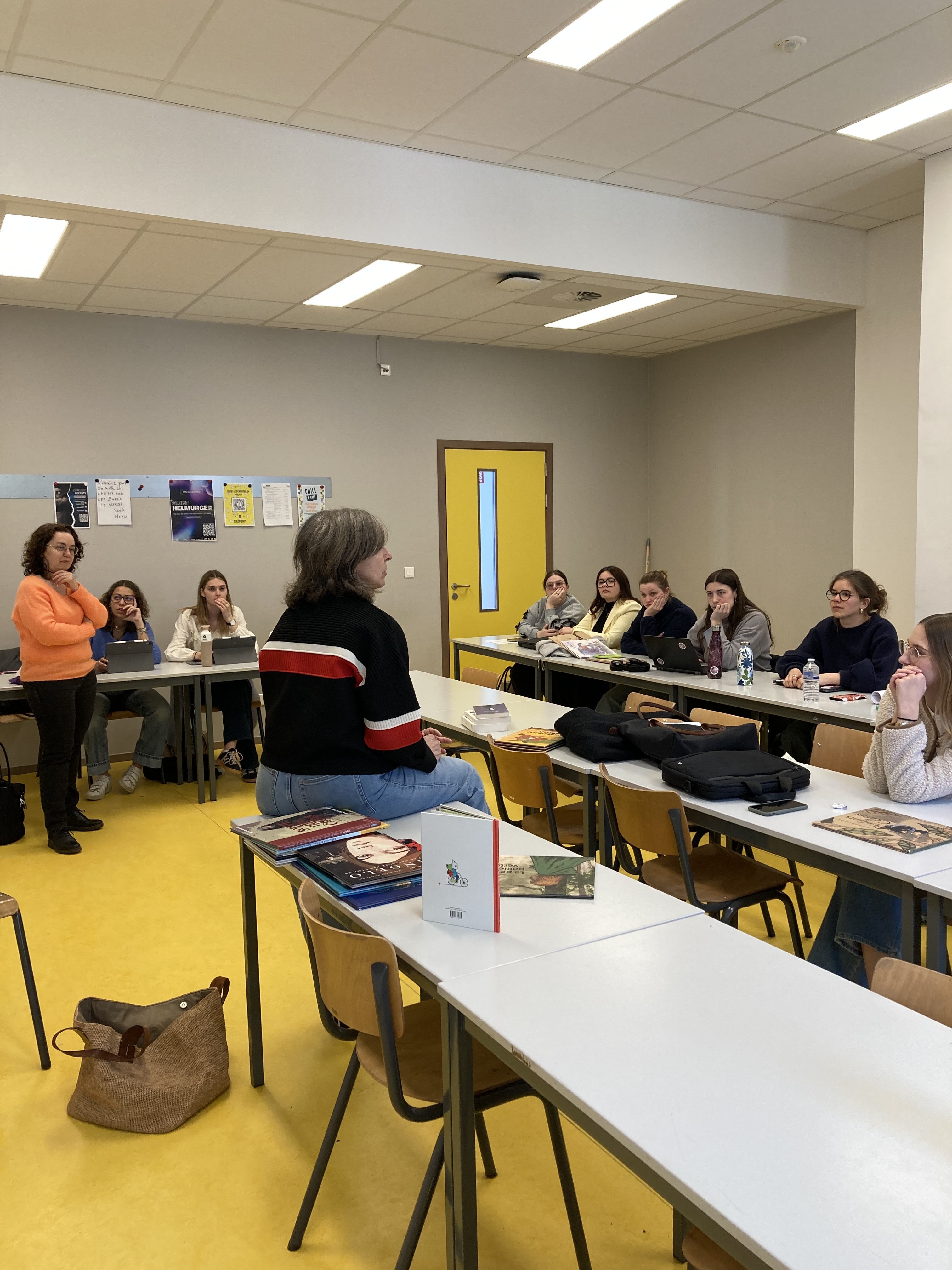 - Béatrice Renard est autrice belge francophone d’albums jeunesse. Avant sa visite, les étudiants avaient découvert ses livres et imaginé des activités à mener en classe. La rencontre a permis de mieux connaître la face « cachée » du métier d’auteur, de comprendre la genèse d’un livre (et de ses illustrations) et de partager un moment plein d’enthousiasme et de sincérité avec une autrice liégeoise, par ailleurs aussi… enseignante.