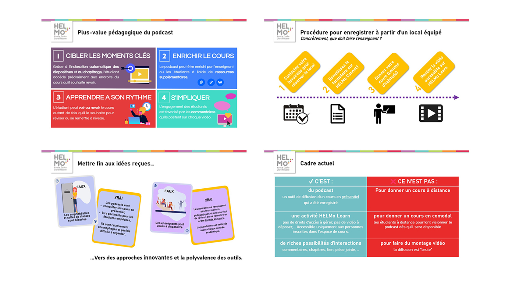 Ces dernières années, HELMo a construit pas à pas une solide expertise dans le domaine du podcast vidéo tant sur les usages pédagogiques, l'accompagnement des utilisateurs que des solutions techniques.