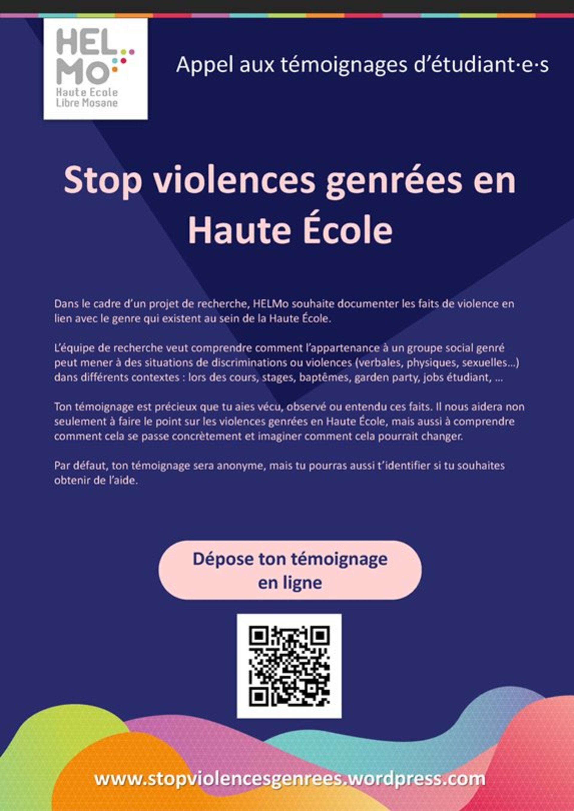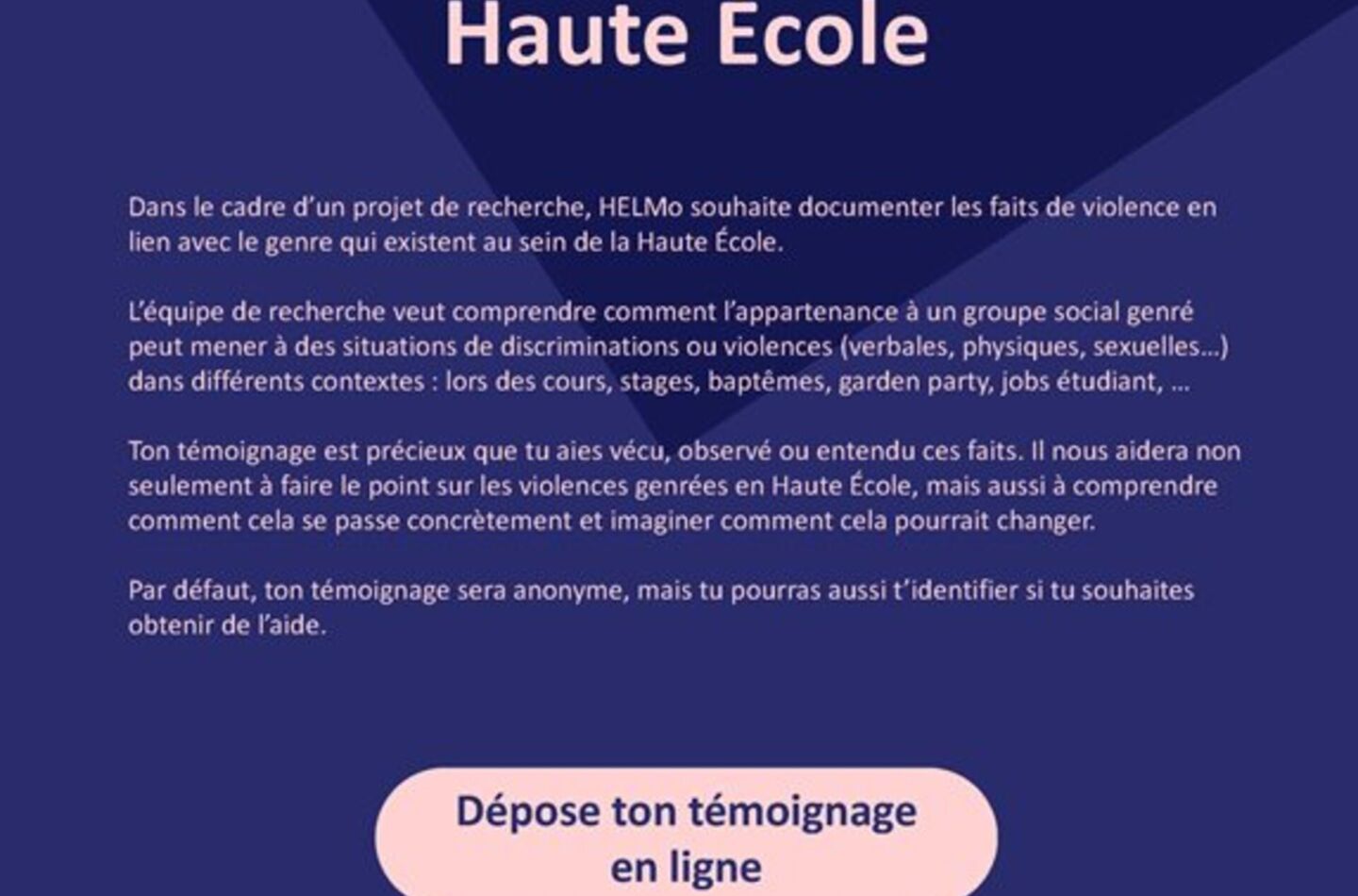 Dans le cadre d'un projet de recherche, l'équipe récolte les témoignages relatant des faits de violences genrées au sein de la Haute École.