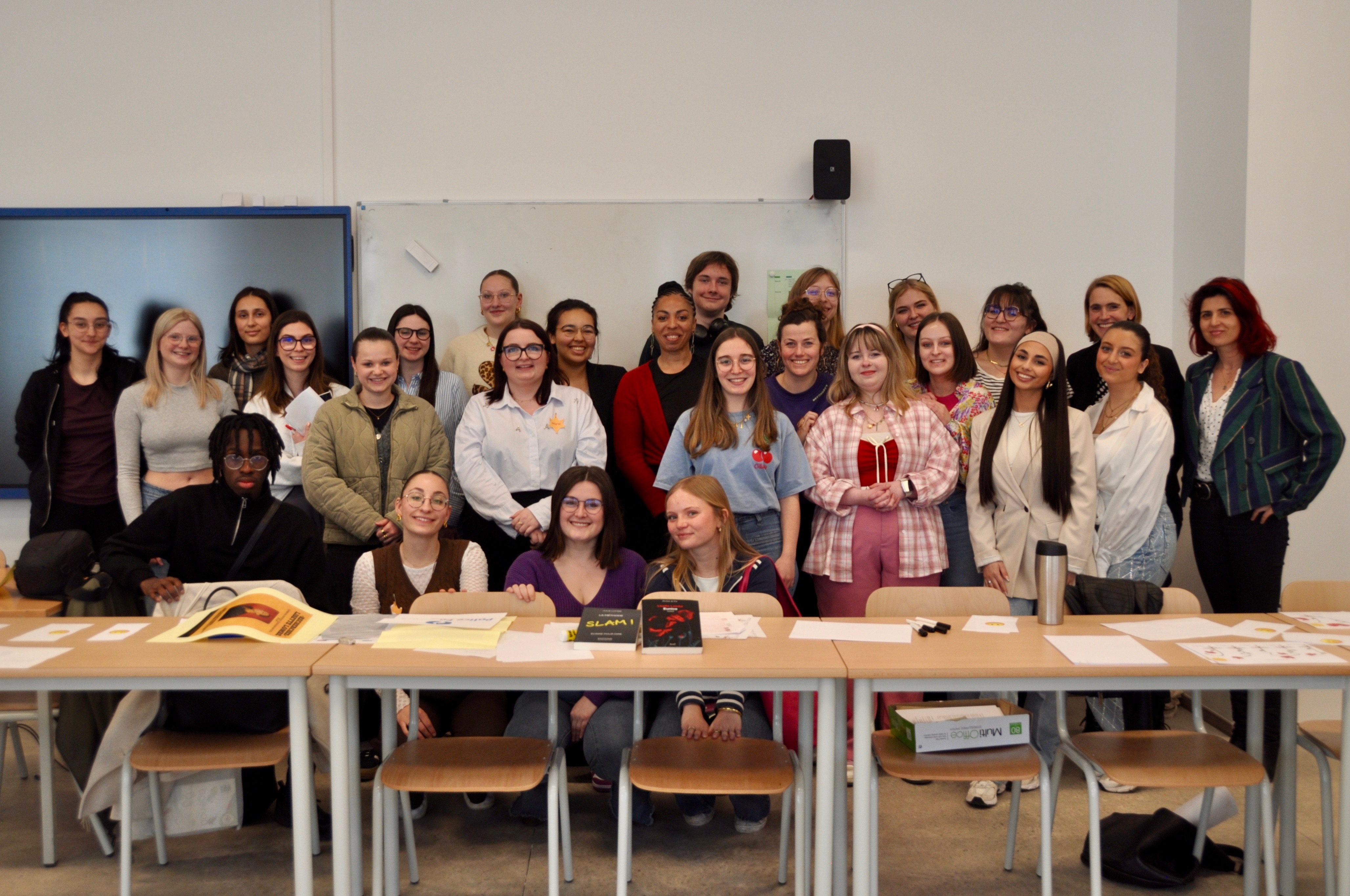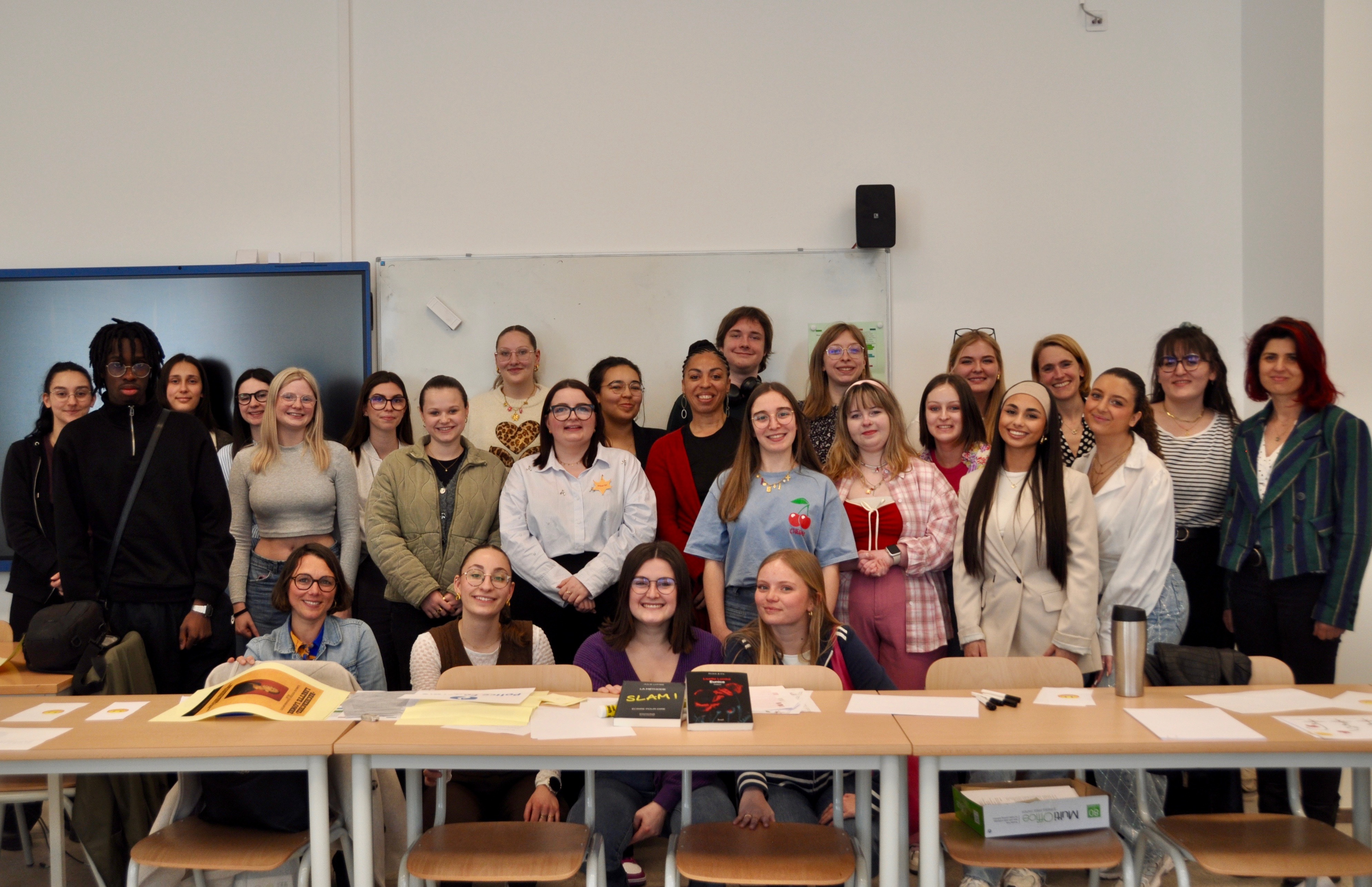 Dans le cadre du projet citoyen "Interculturalité" regroupant les étudiants de B1 et de B2 de la Section 3 Français, HELMo Sainte-Croix a accueilli Lisette Lombé, slameuse, autrice et poétesse nationale belge.