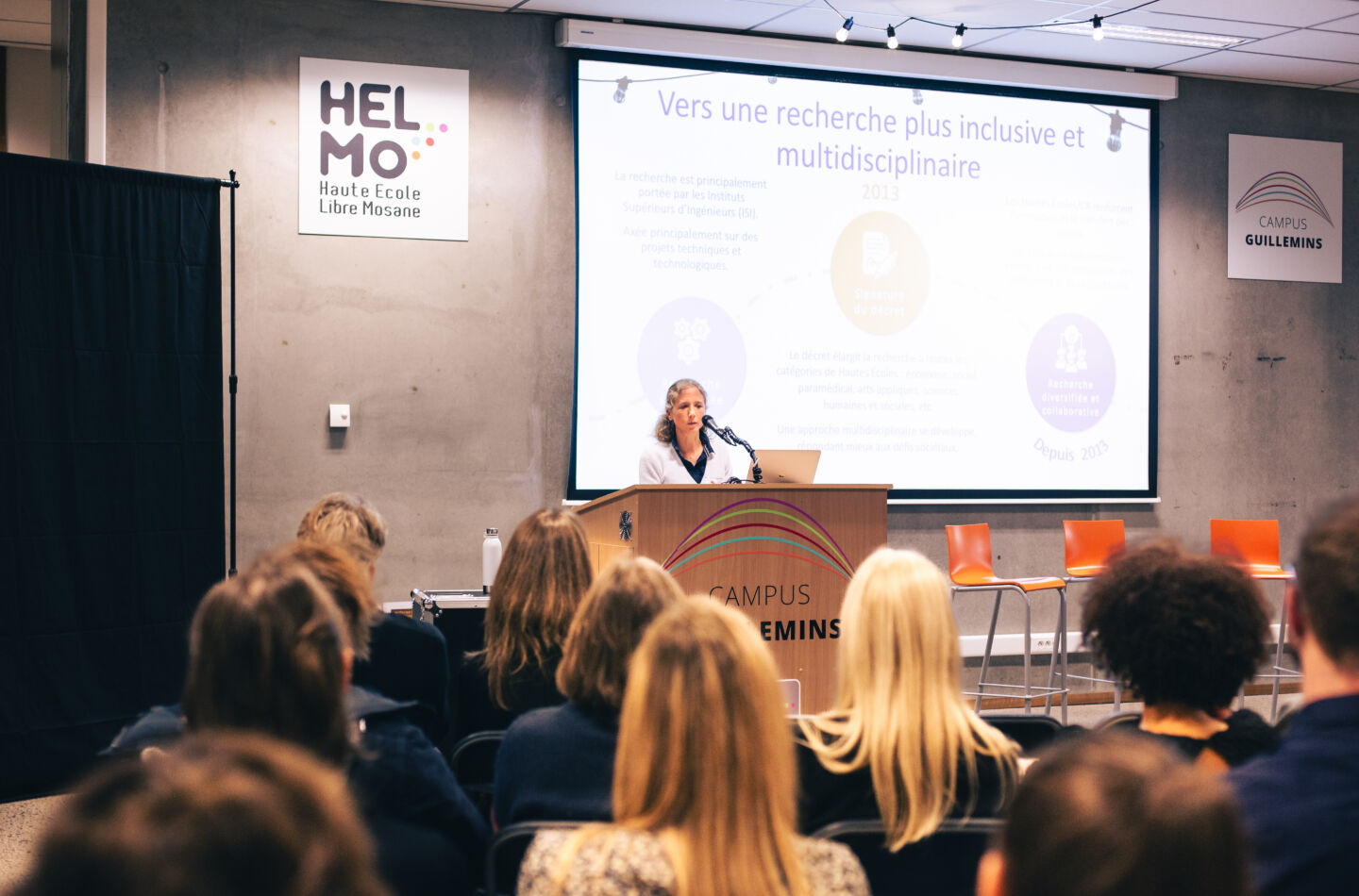 Le mardi 26 novembre 2024, les Coulisses de la Recherche, la soirée découverte des projets de recherche HELMo, se sont tenues au Campus Guillemins de 16h30 à 21h30.