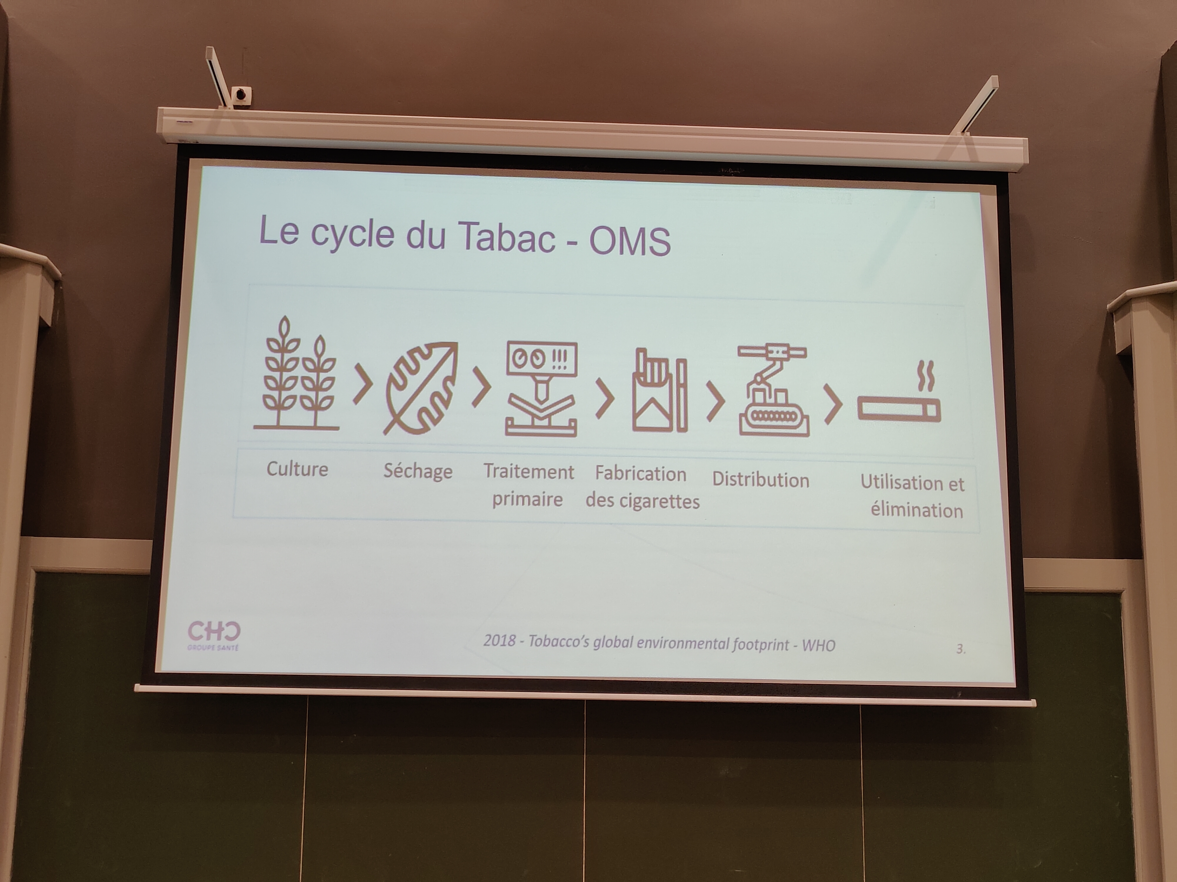Ce mardi 26 mars 2024 se tenait la Conférence "Tabac et environnement", de 12h15 à 13h30 au local 206 du Campus de l'Ourthe.