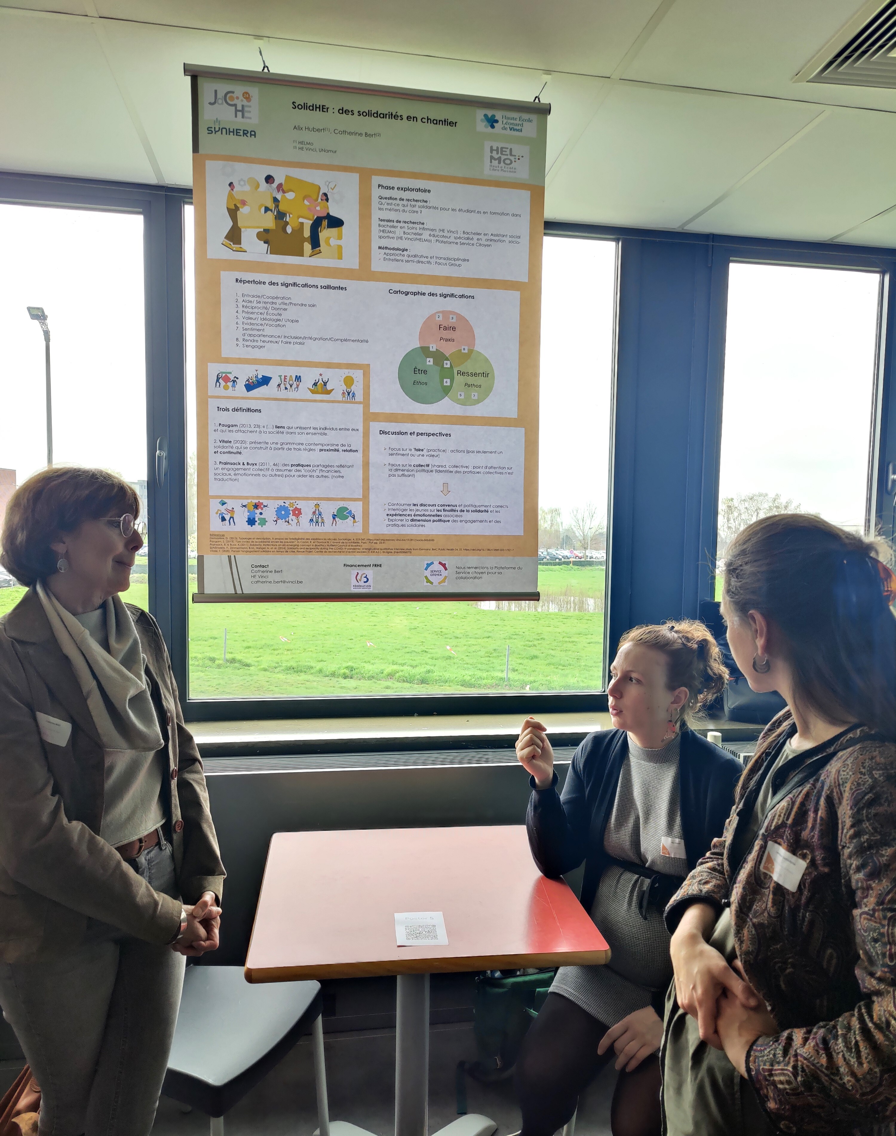 - Alix Hubert et Catherine Bert (Haute École Léonard de Vinci) présentaient un poster "Solidarités en chantier", qui a remporté le prix du meilleur poster, remis directement des mains de Elio Di Rupo en fin de journée !