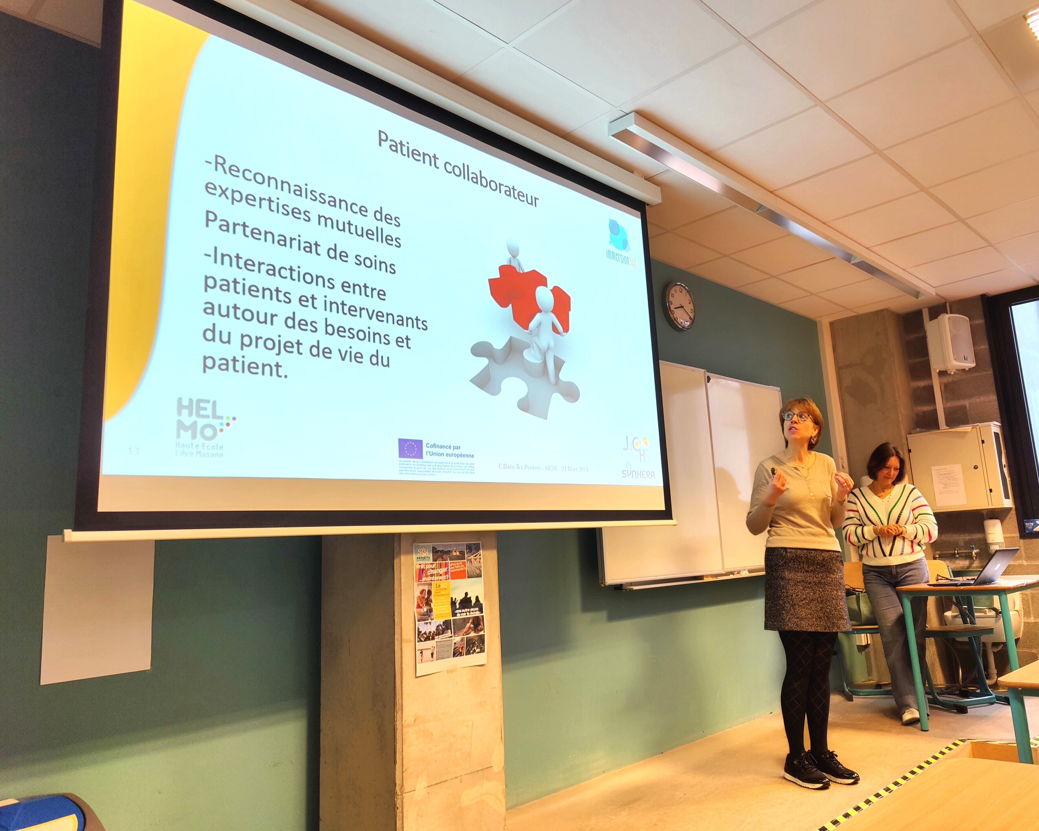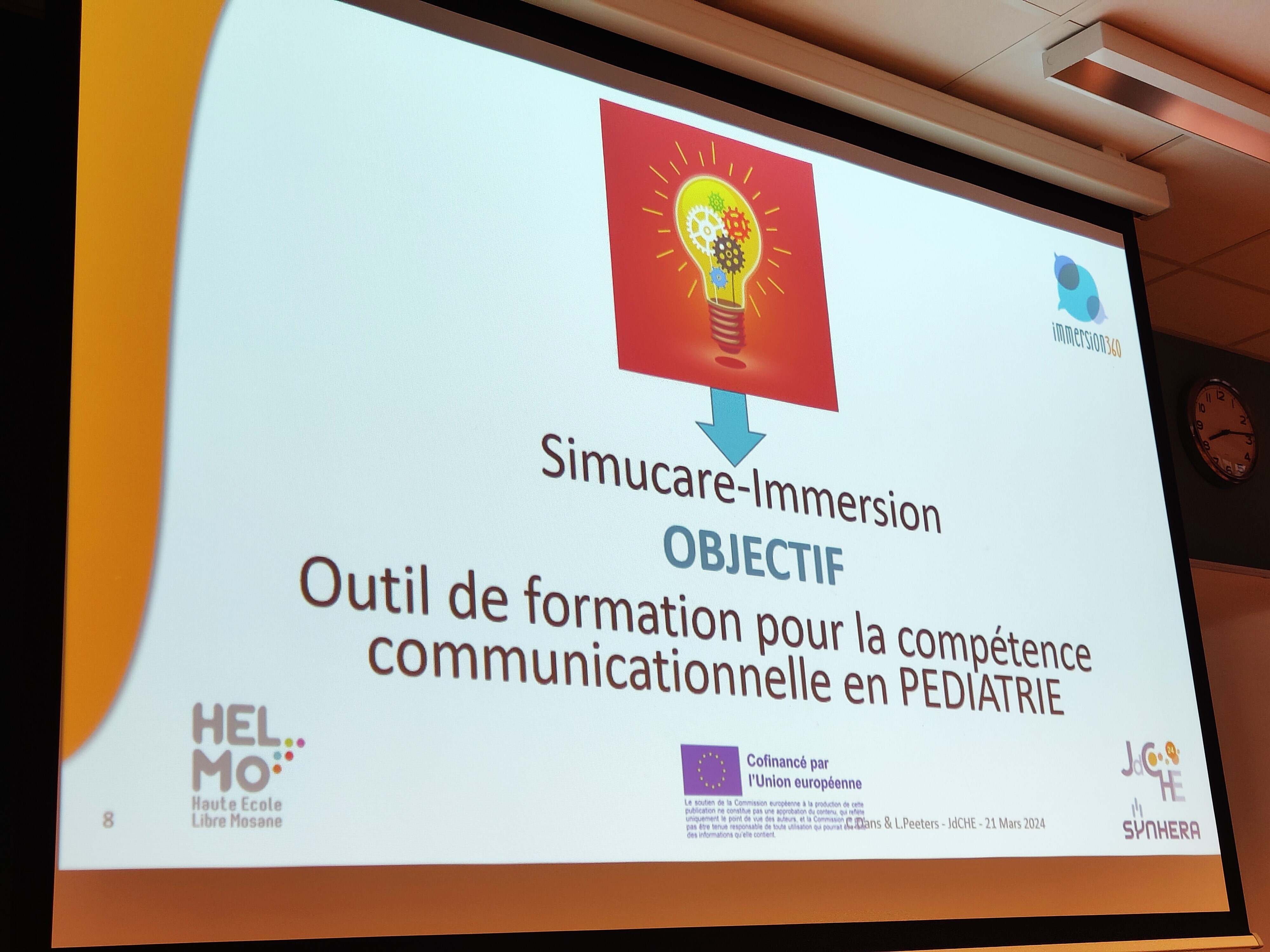 Ce sont les enseignantes-chercheuses Catherine Dans et Laurence Peeters qui y ont présenté leur projet Simucare Immersion 360°, une recherche réalisée avec le patient partenaire pour mobiliser les concepts de la compétence communicationnelle en pédiatrie en formation initiale, dans les domaine médical et paramédical.
