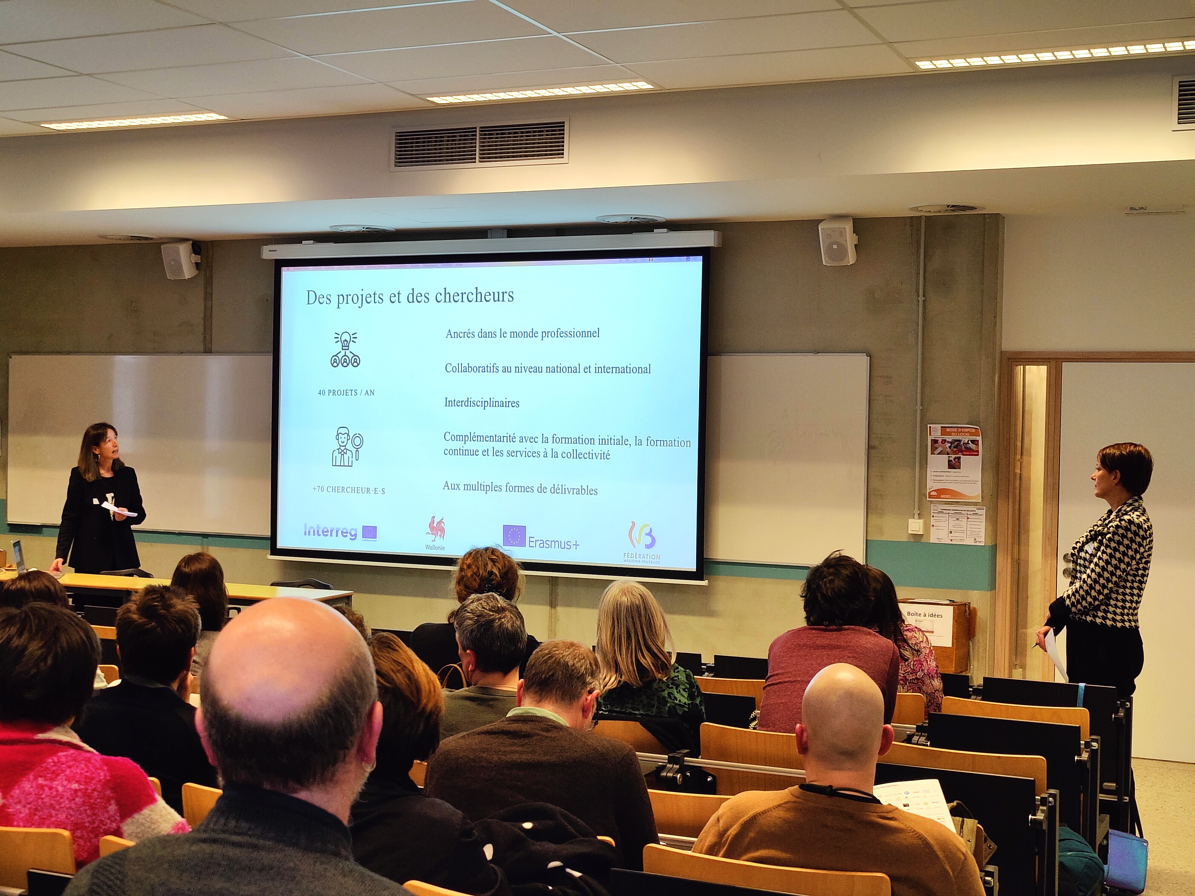 Cette soirée, prenant place dans le cycle de conférences de HELMo Recherche « Croiser les savoirs et les pratiques pour répondre aux défis du monde de demain », était organisée autour d'une conférence de Sybille Mertens intitulée « L’économie sociale, moteur de transition sociale et écologique ». Professeure ordinaire, mais également conseillère de la rectrice à la transition environnementale et sociale, et directrice du Centre d'économie sociale de l'ULiège, Sybille a abordé différentes notions qui permettraient d'envisager un avenir autre.