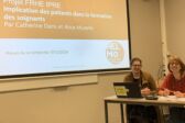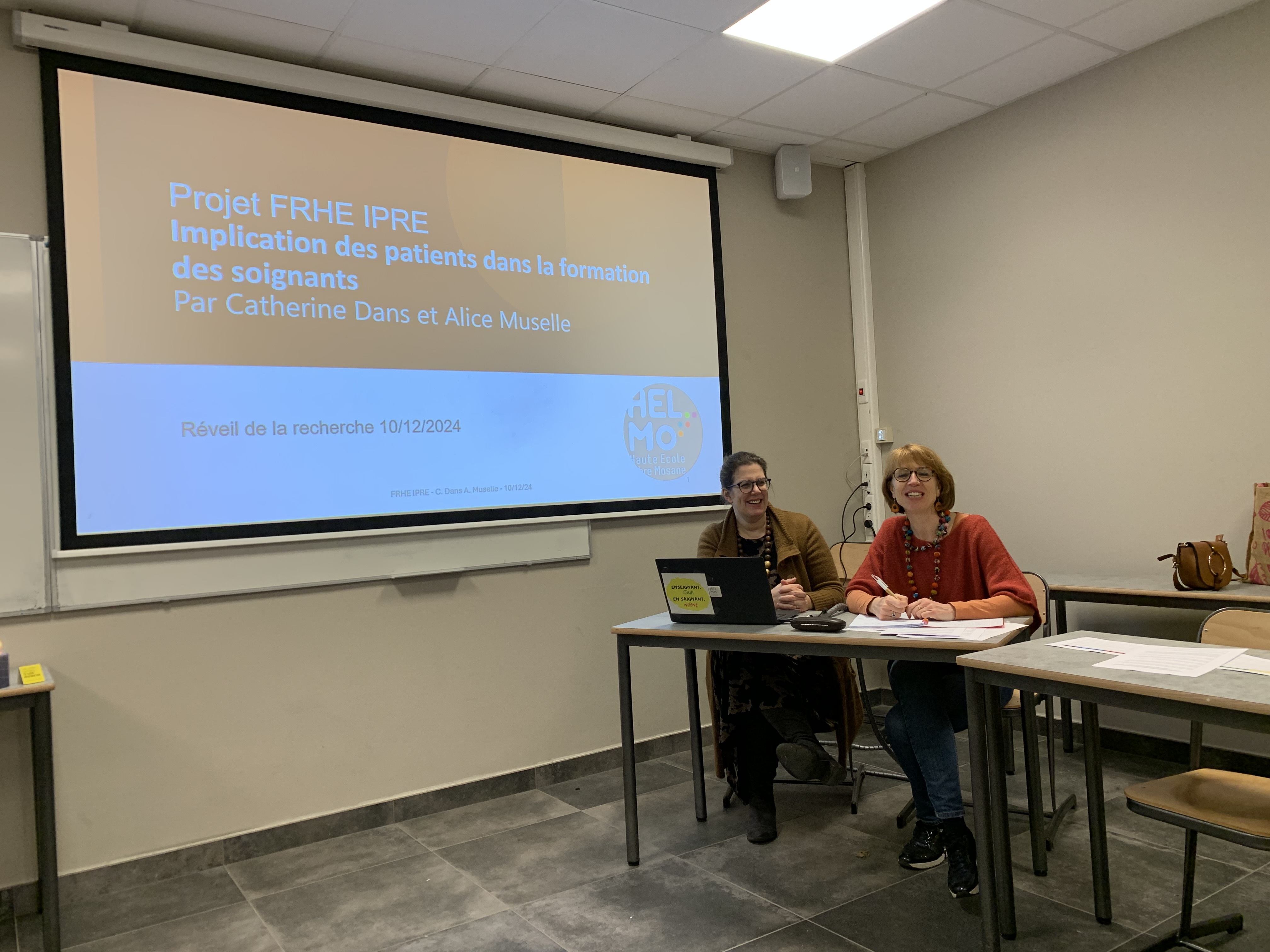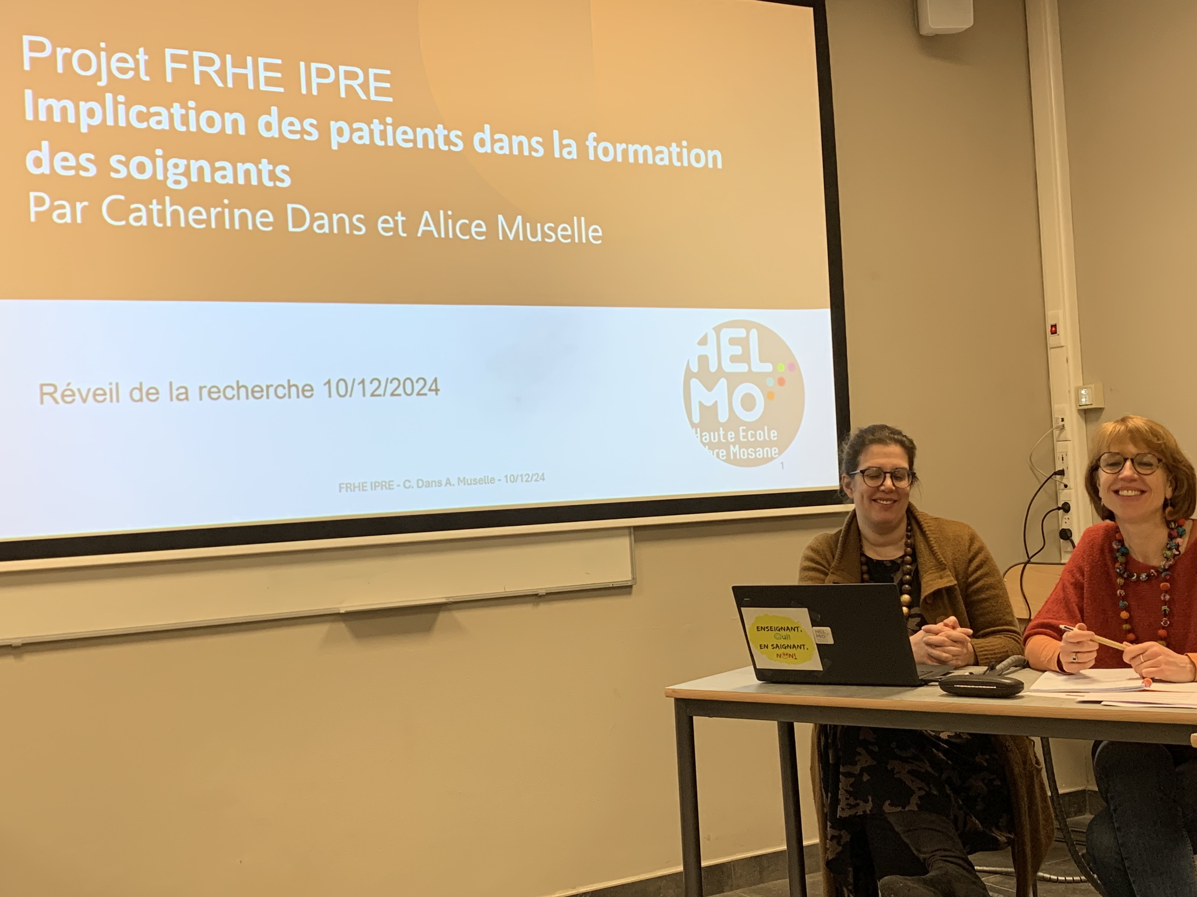 Les enseignantes-chercheuses Catherine Dans et Alice Muselle y ont présenté leur projet de recherche FRHE IPRE, une analyse comparative des types d’implication de patients-formateurs dans la formation des infirmier·ère·s en Fédération Wallonie-Bruxelles en vue de recommandations coconstruites à destination des enseignant·e·s en Haute École.