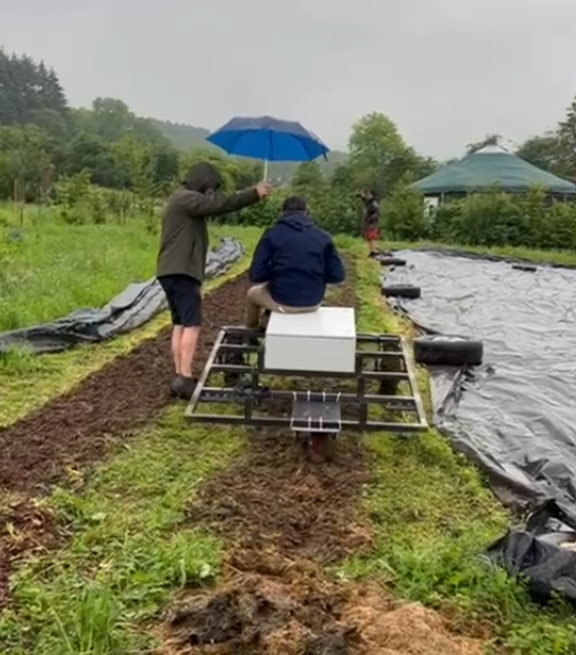 Le rover autonome arrive désormais à une position fixée en transportant un des concepteurs du programme, mais la régulation via l’Esp32, n'est pas encore parfaite. Le 17 mai, sous la pluie, nous avons testé le Salvaterre sur le site de la Forêt de Luhan en mode automatique et manuel. Les conditions sur site sont plus complexes : le véhicule, très léger, souffre d’un manque d’amortissement, affectant son adhérence au sol.