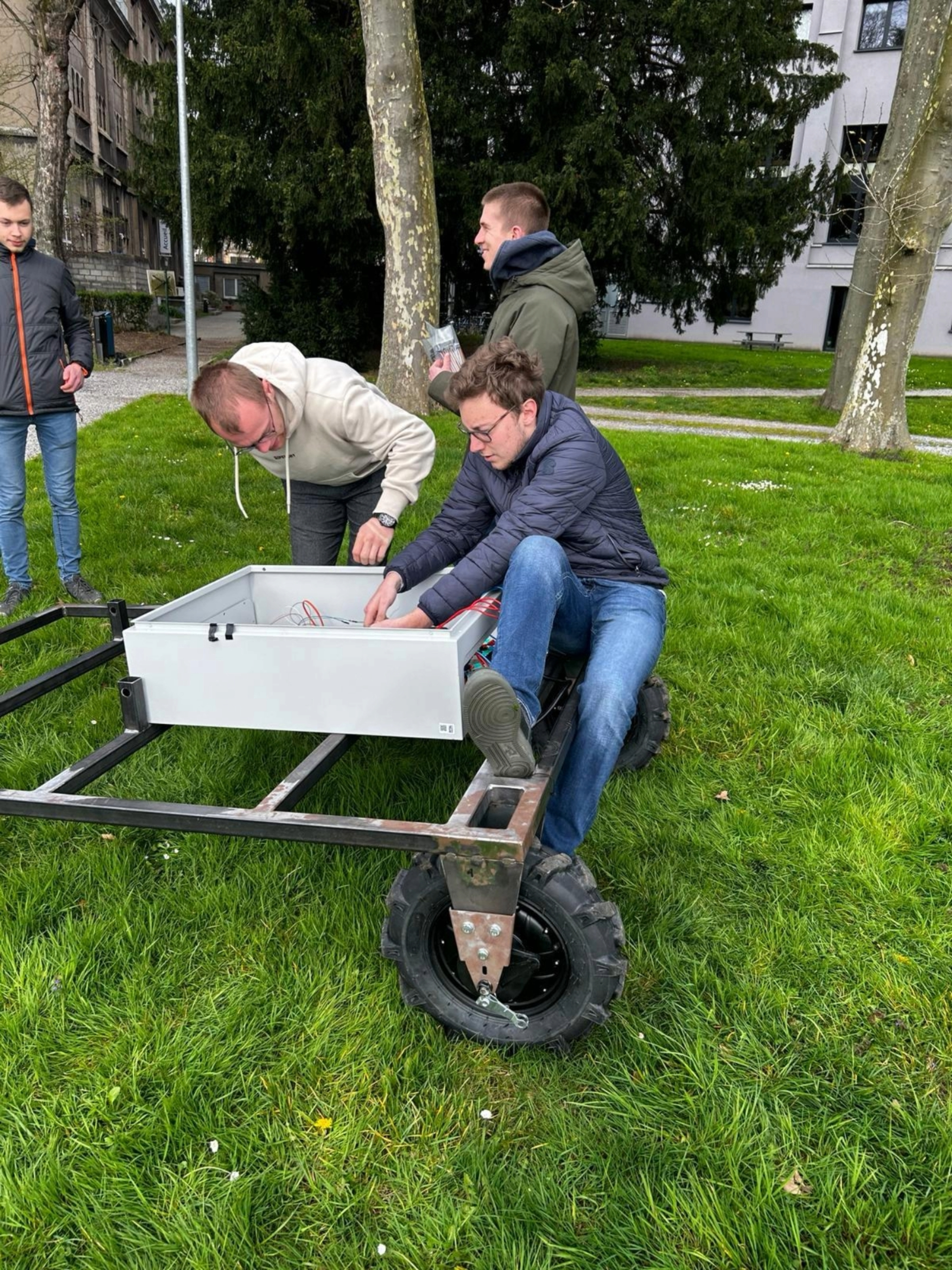 Depuis le début, le travail sur le projet est intense, tant de la part des étudiants que de leurs enseignants, tous motivés par l'objectif de concrétiser ce projet porteur de sens. Au Q1, les étudiants de HELMo Gramme, dans le cadre de leur cours de construction de machines, ont collaboré avec le maraîcher de Luhan, Laurent Van Ngoc, pour améliorer le prototype développé l’année précédente. Pendant ce temps, les étudiants de HELMo Saint-Laurent ont continué à travailler sur l’automatisation du véhicule, qui doit être autonome le plus souvent possible, mais aussi guidé manuellement dans certains cas.