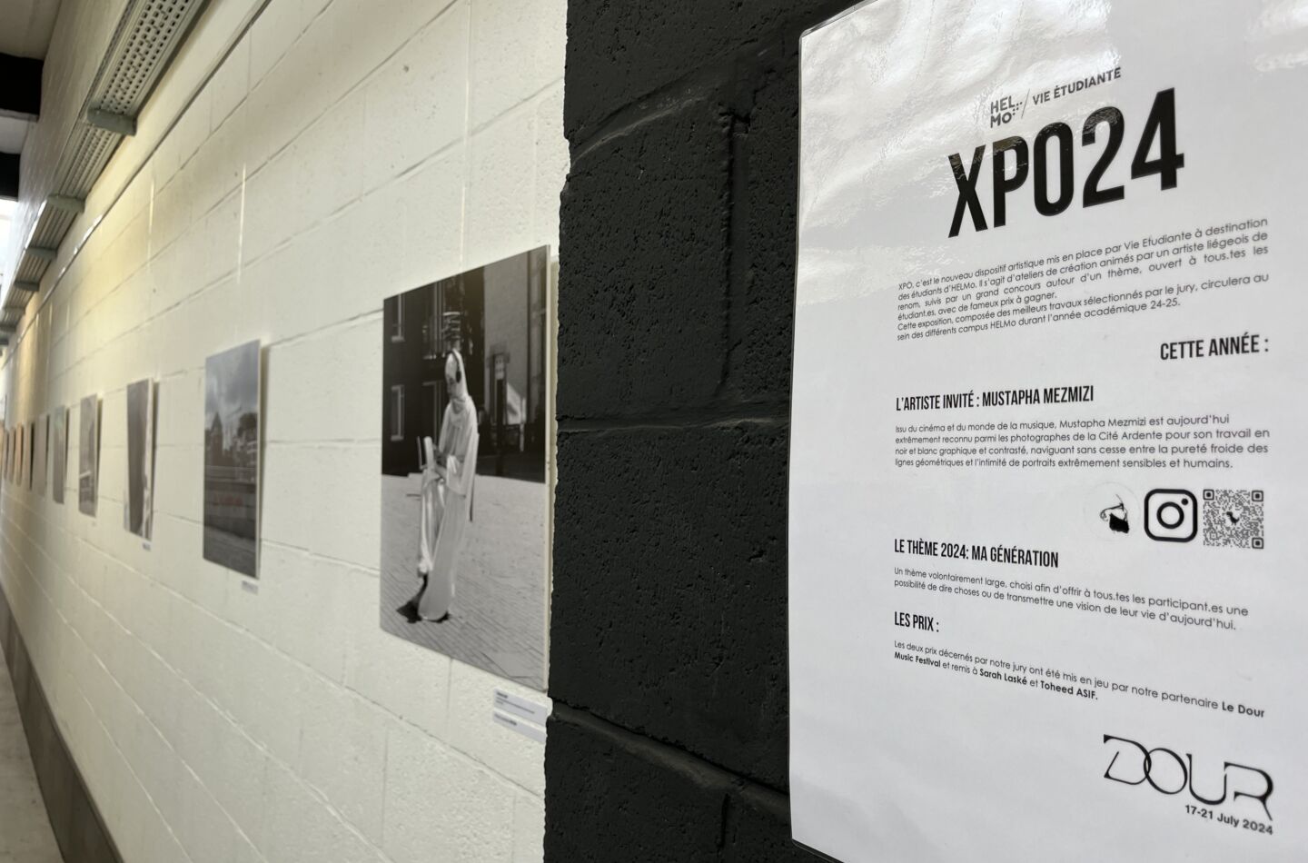 Les deux gagnants, Sarah Laské, étudiante en mode, et Toheed Asif, étudiant au CFEL, reçoivent chacun trois pass d'une journée pour le Dour Festival. L'exposition est ouverte jusqu'à fin septembre au cœur du campus Guillemins, juste en face de l'accueil. Par la suite, elle sera présentée sur les différents campus d'HELMo.